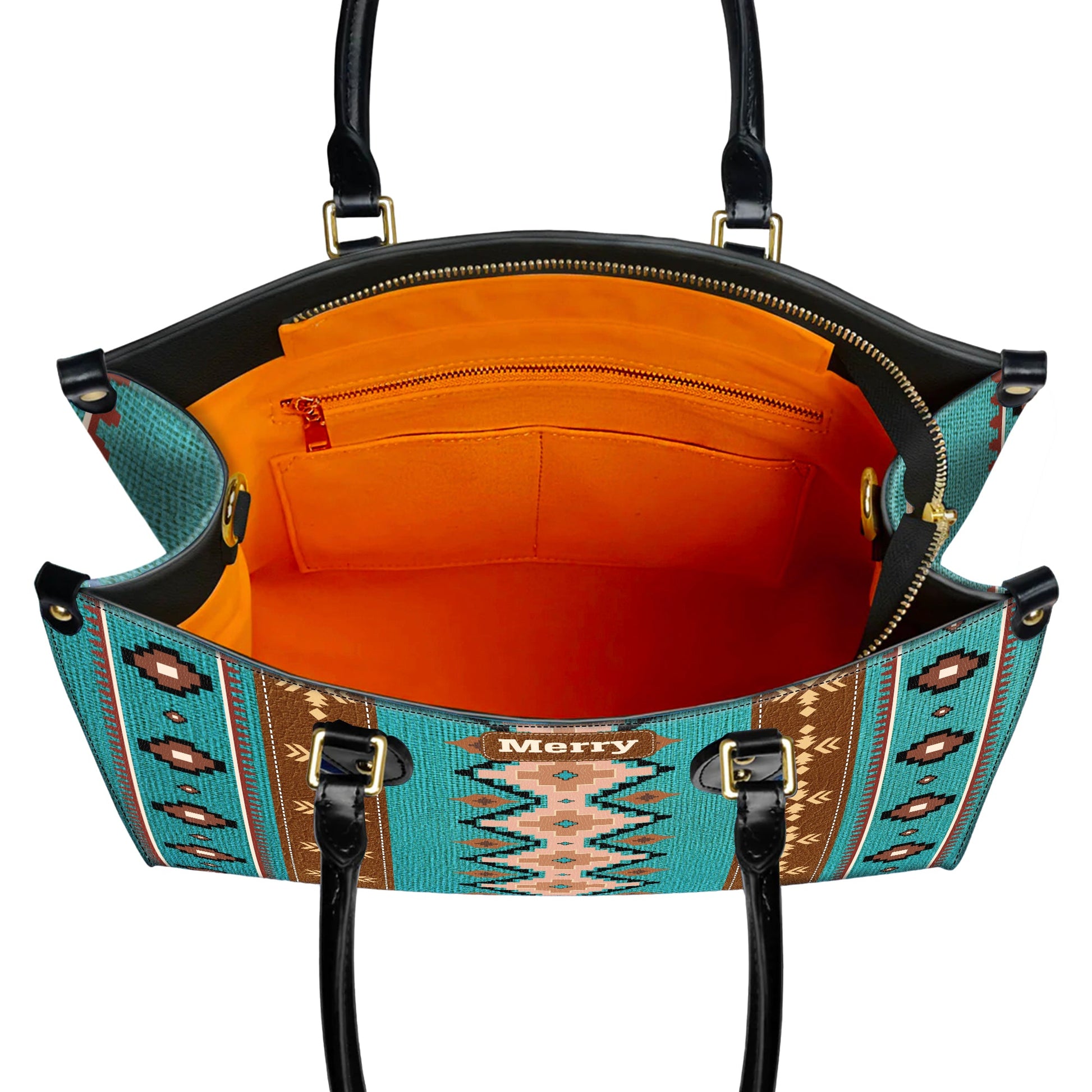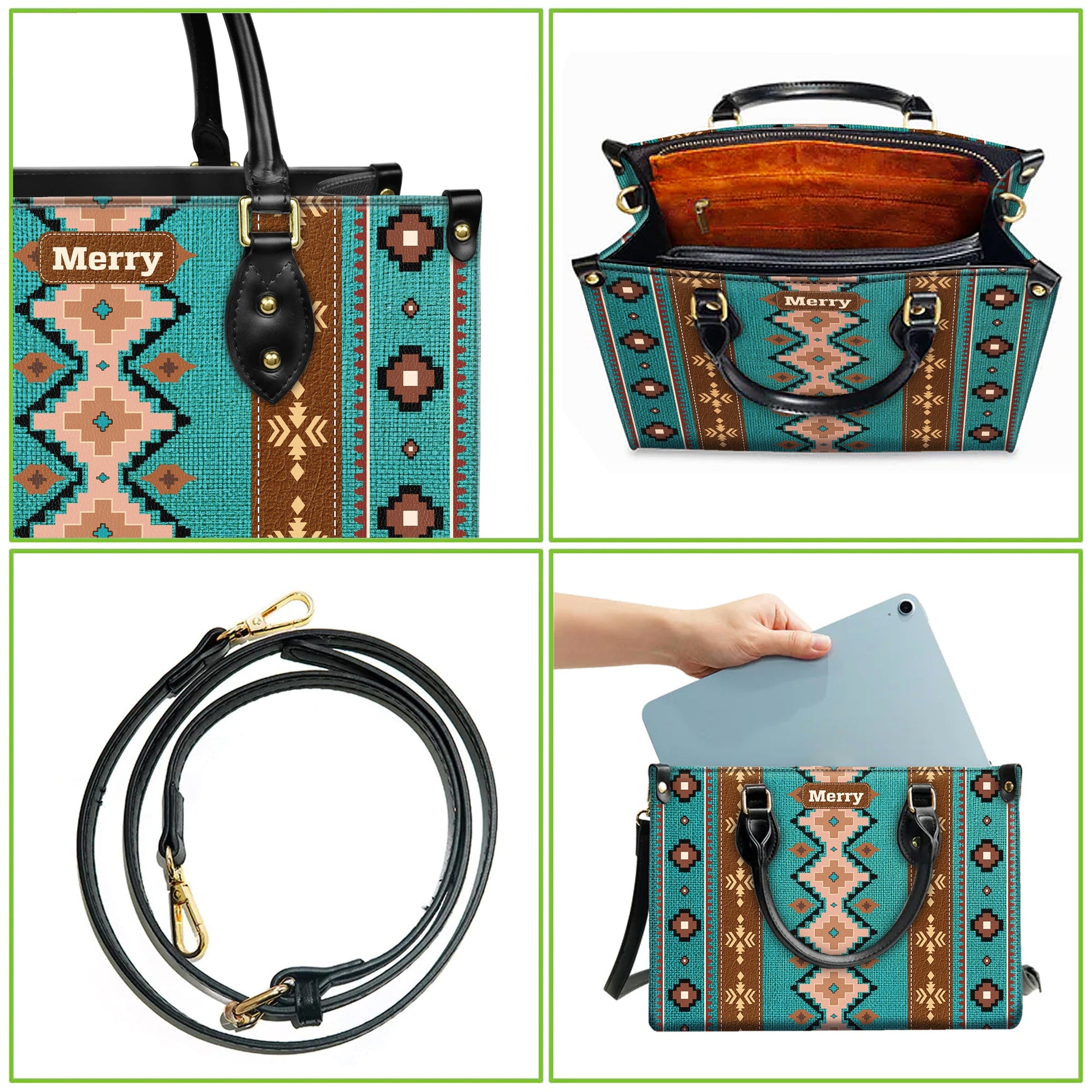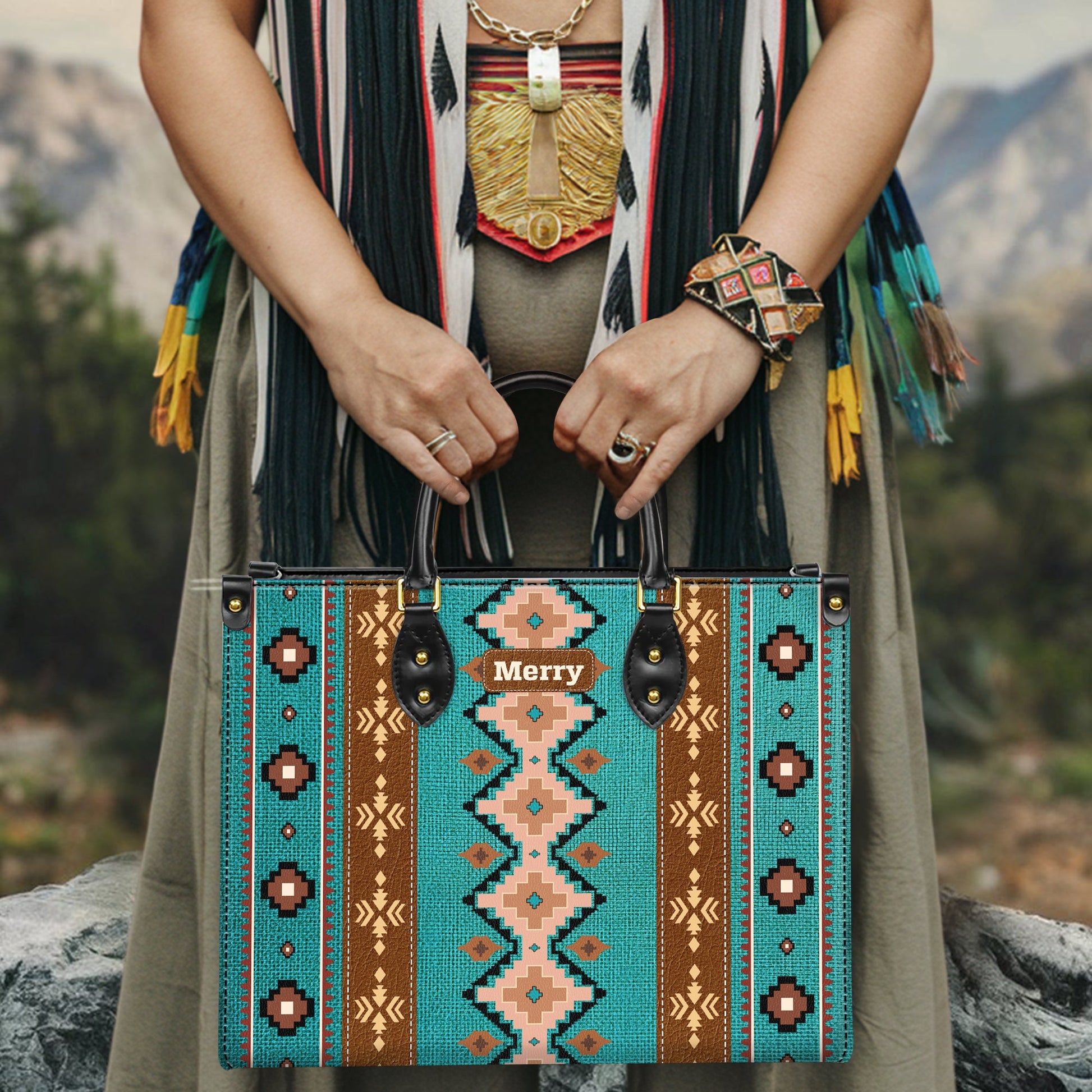 Personalized Leather Handbag for Women - Design Patten Boho Aztec Style LB07