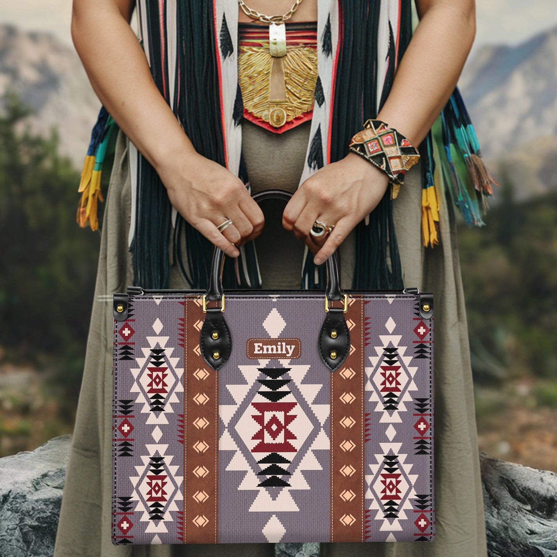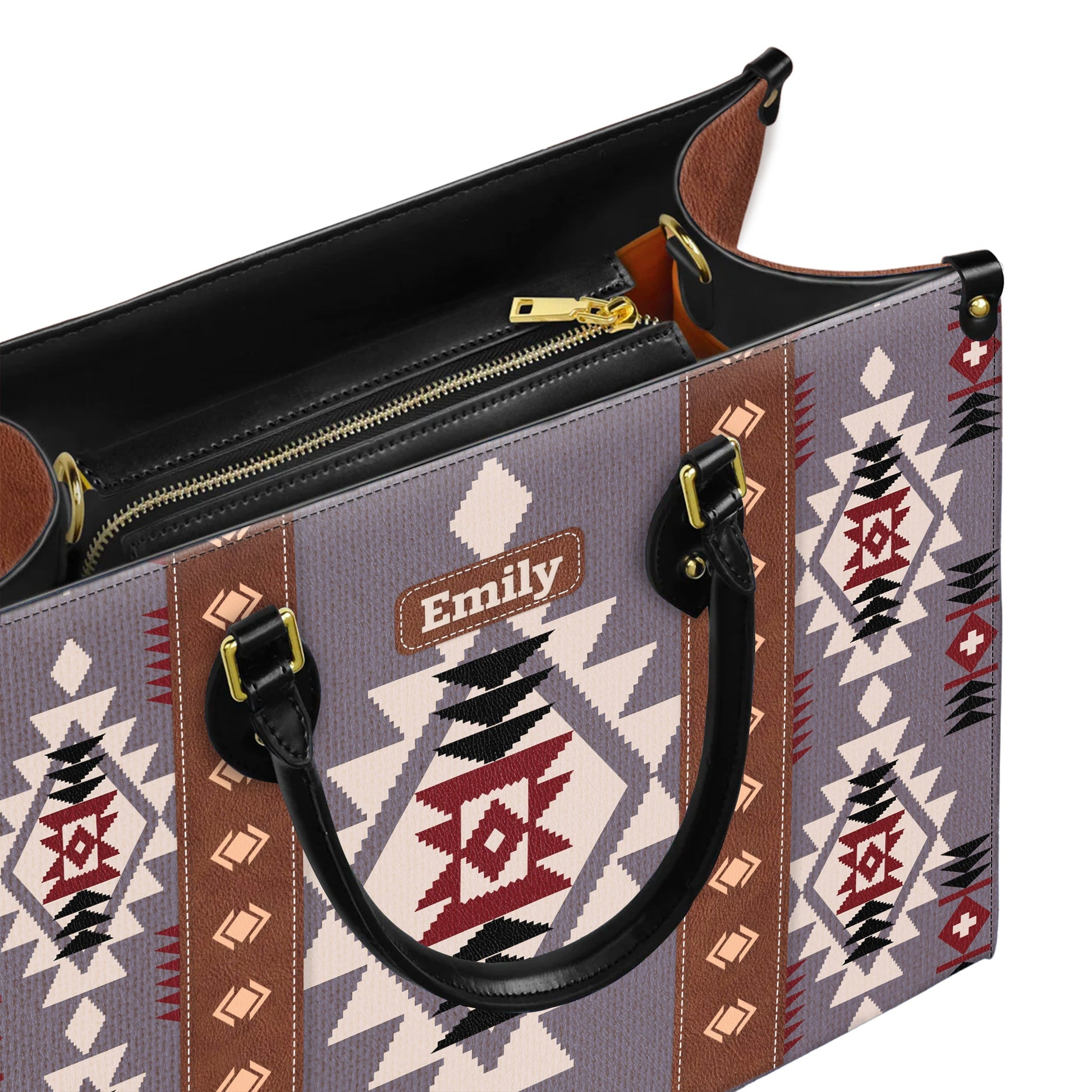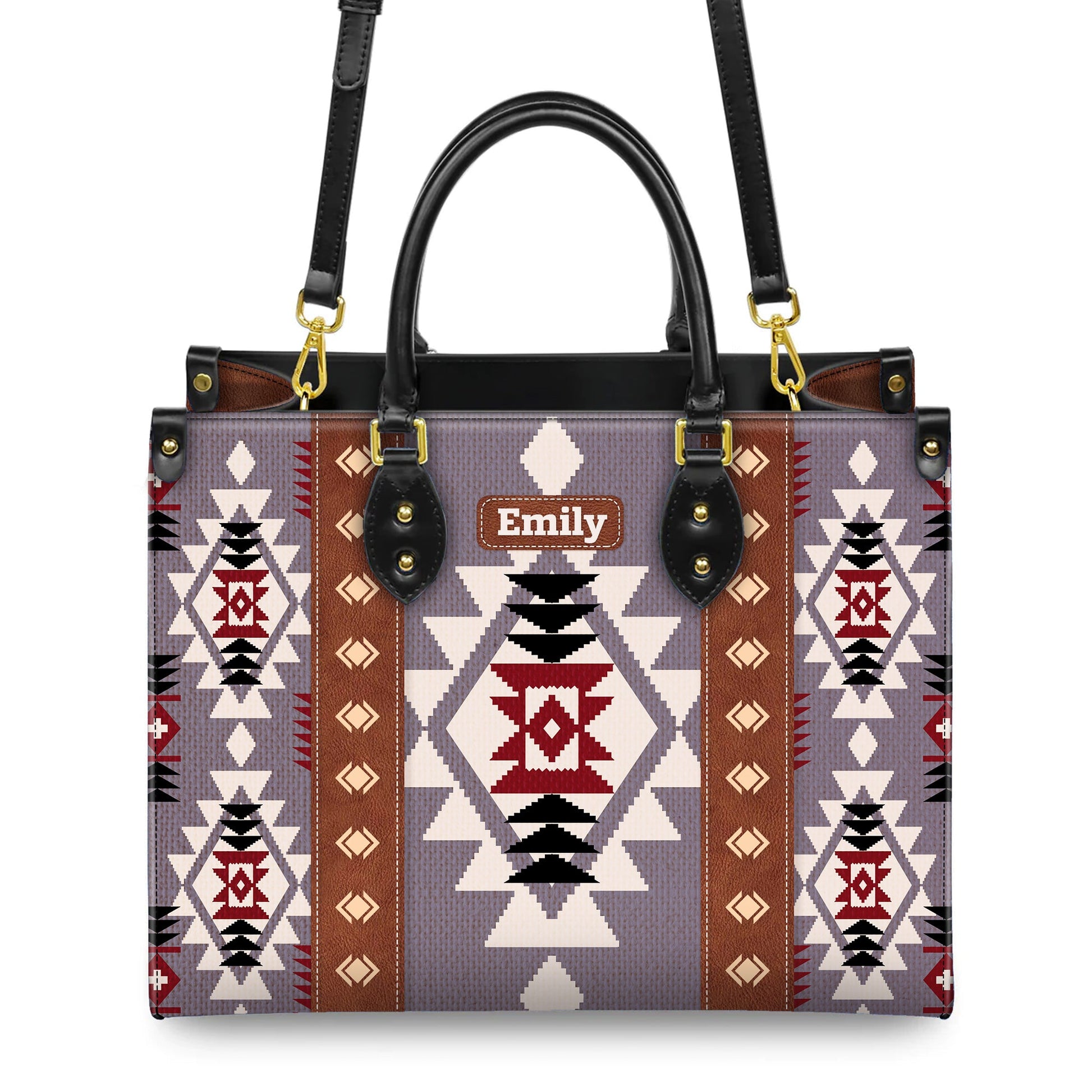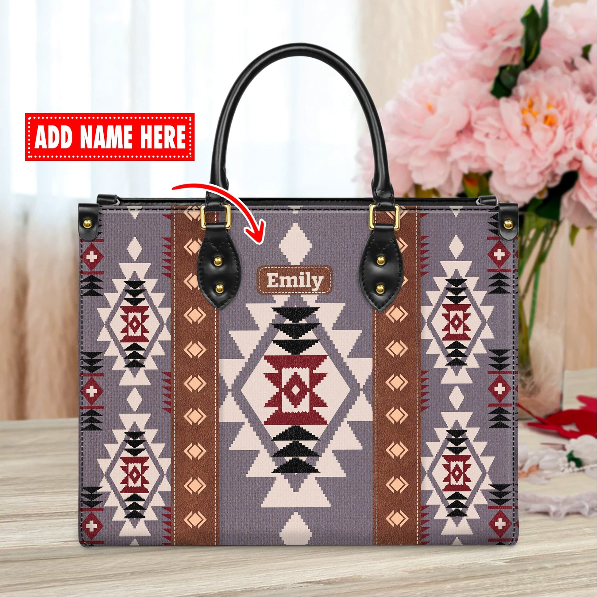 Personalized Leather Handbag for Women - Design Patten Boho Aztec Style LB08
