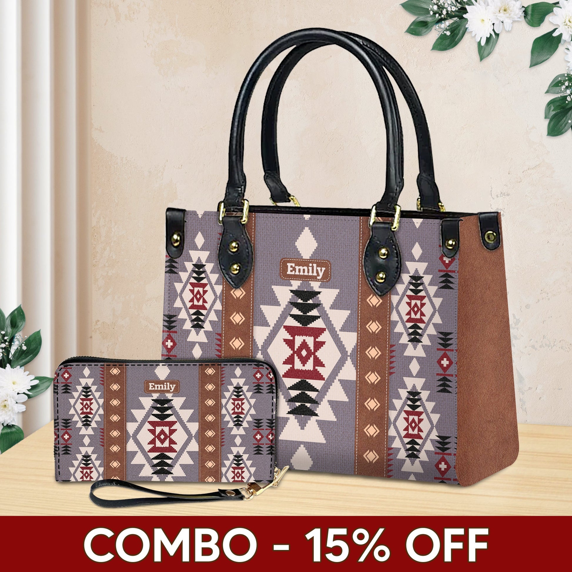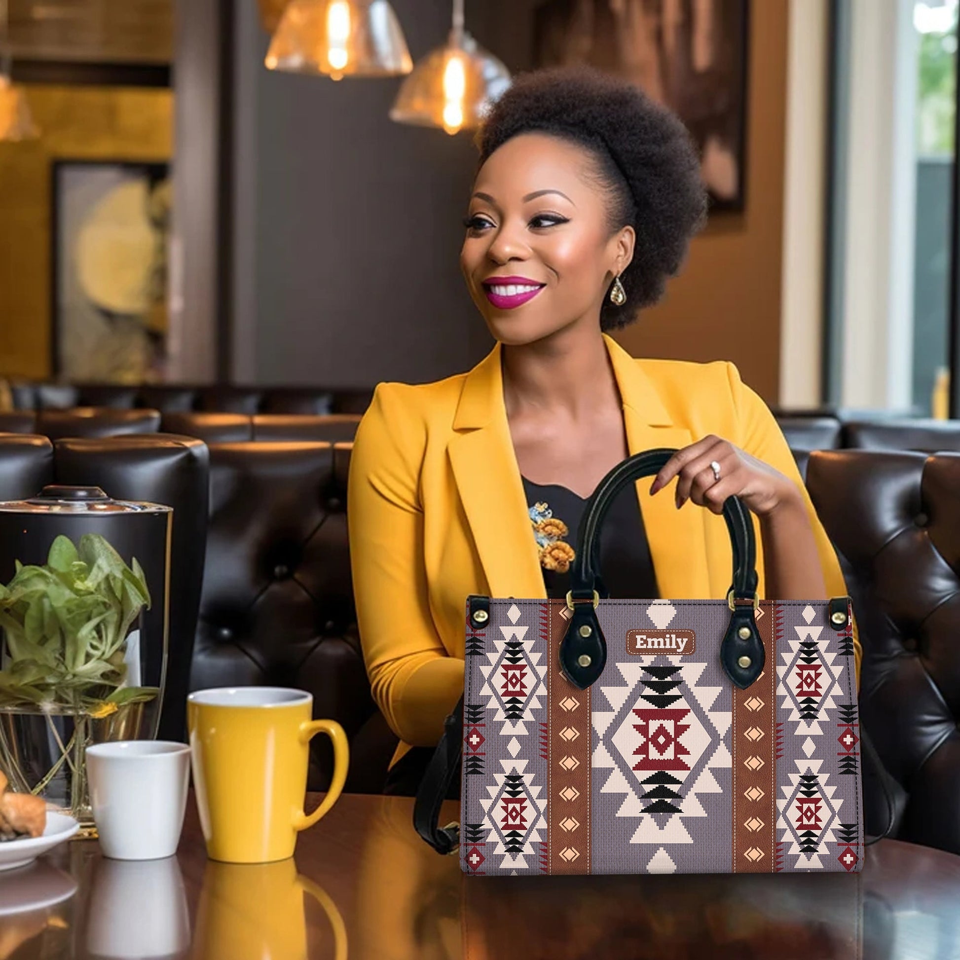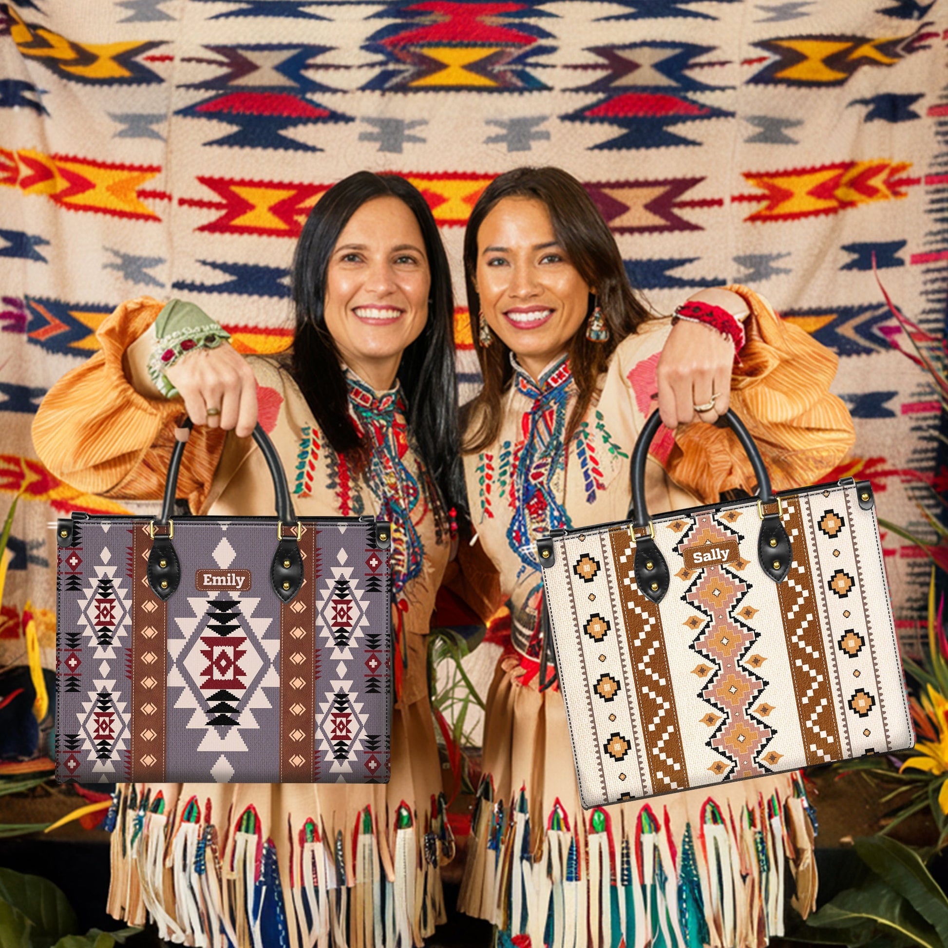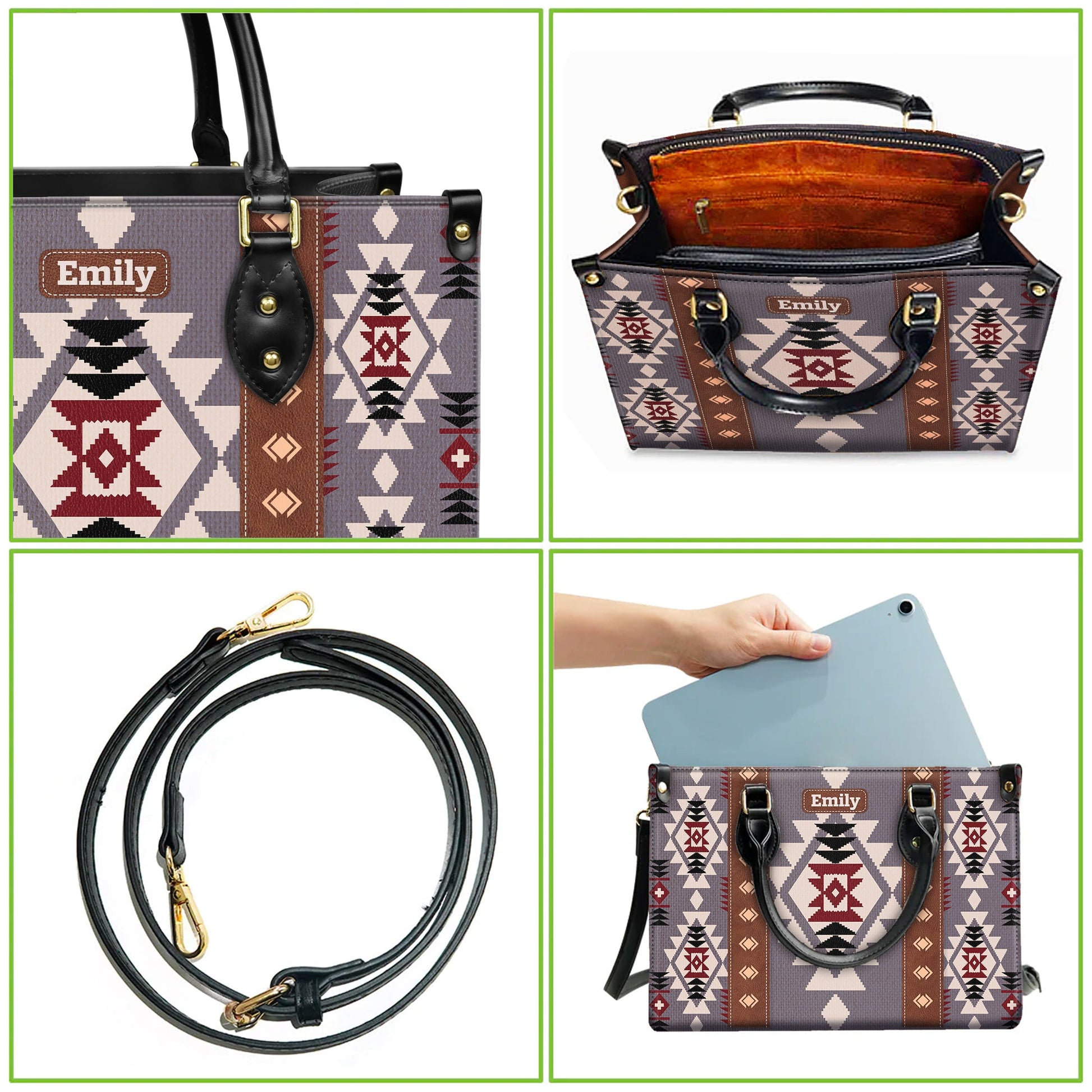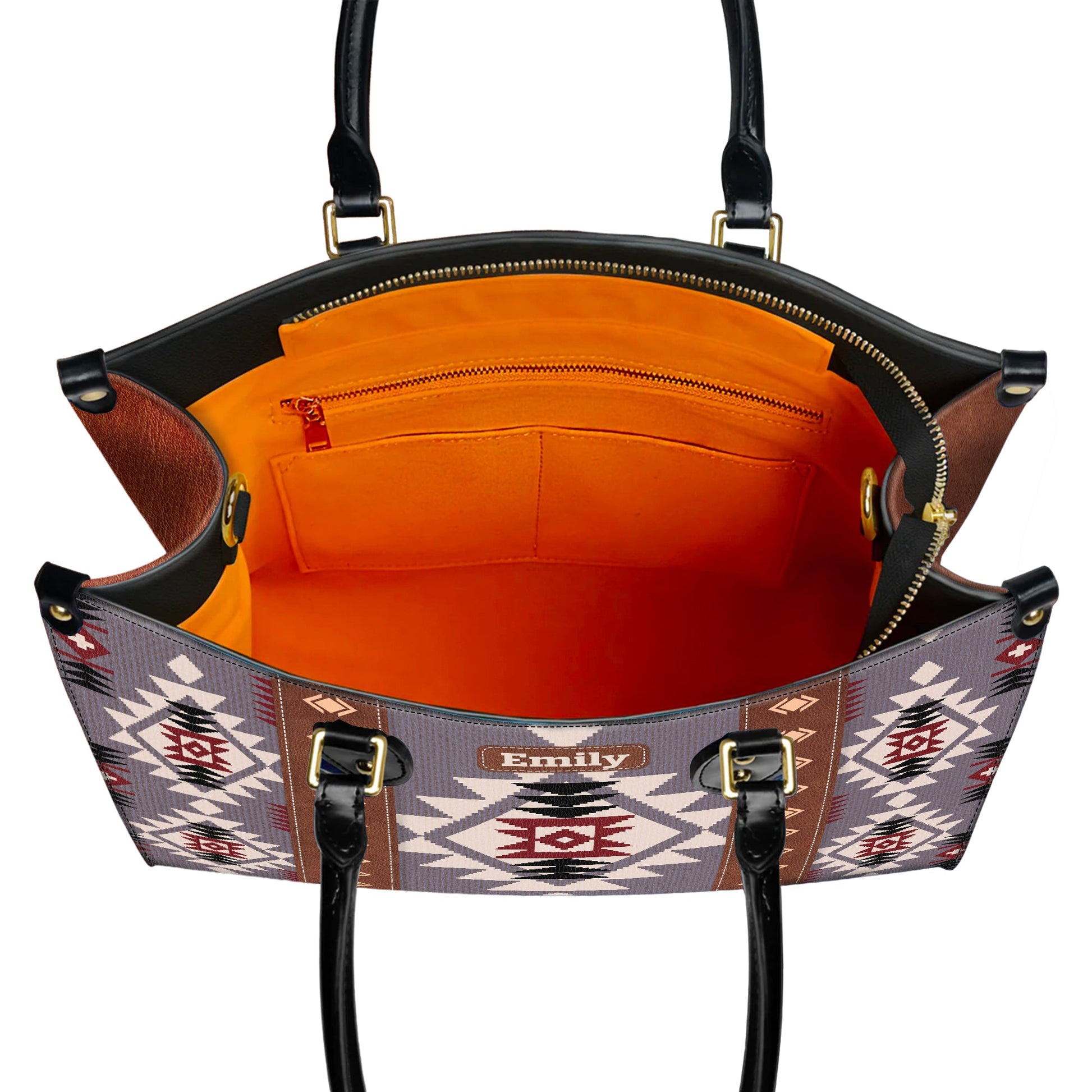Personalized Leather Handbag for Women - Design Patten Boho Aztec Style LB08