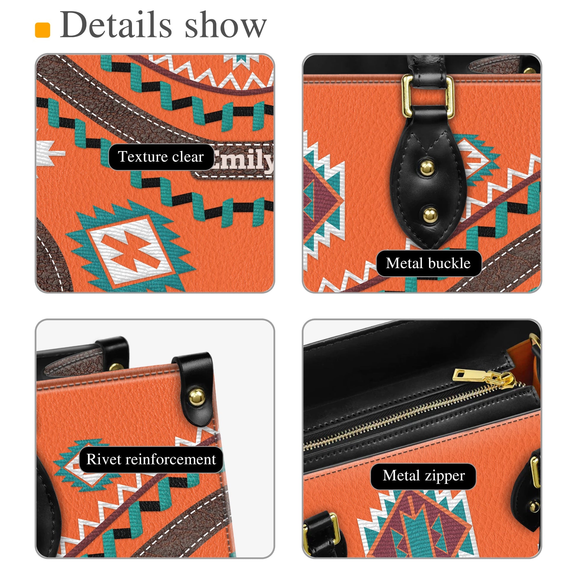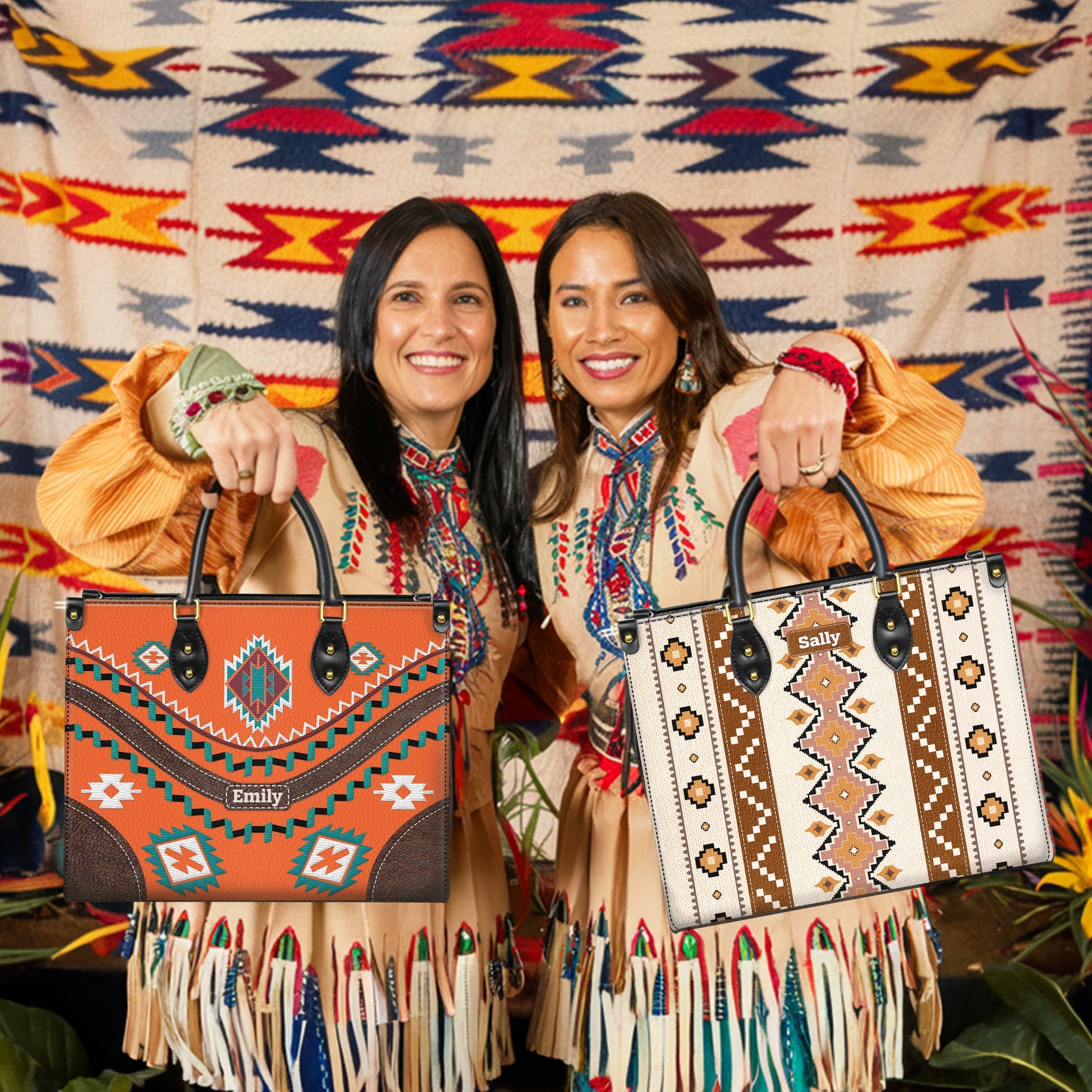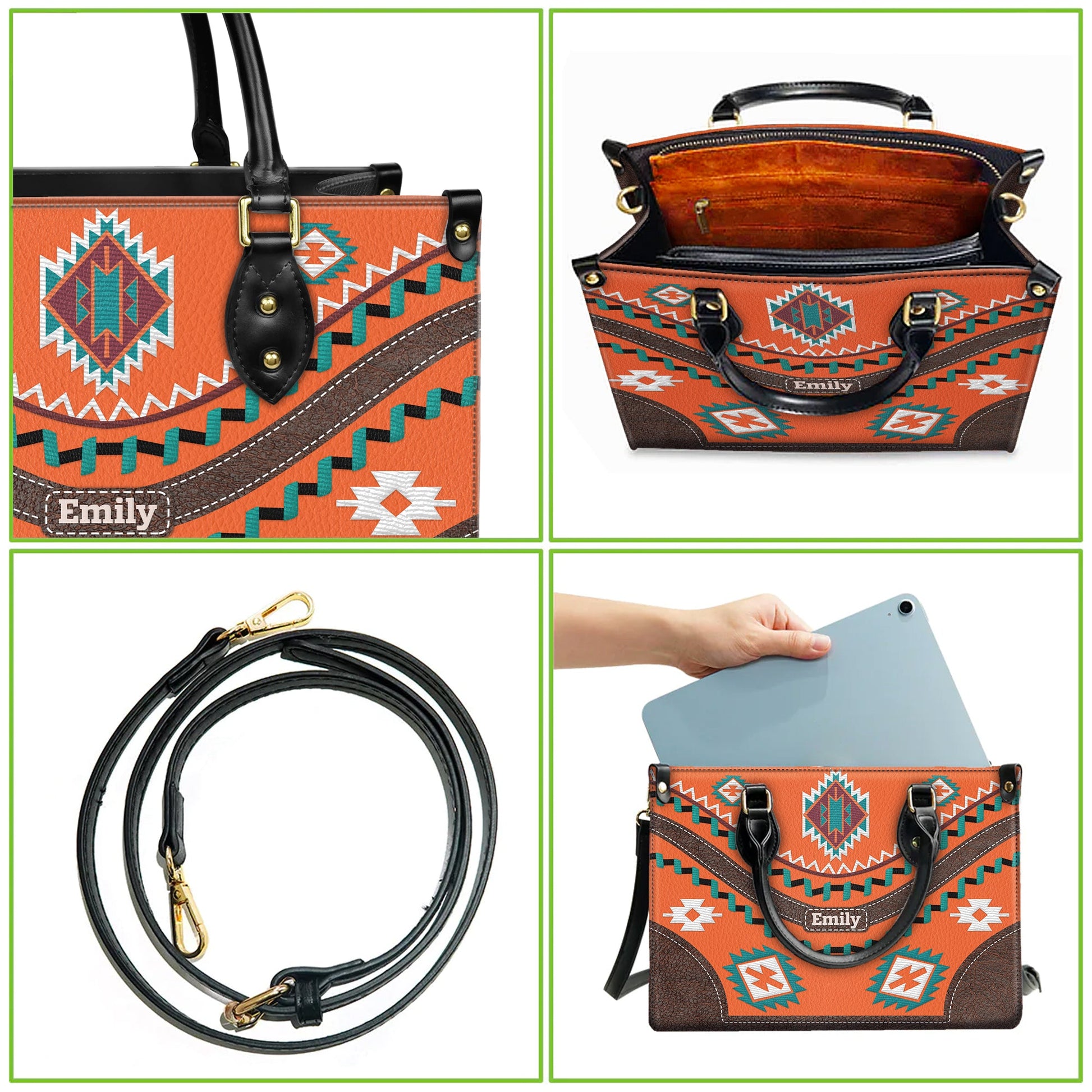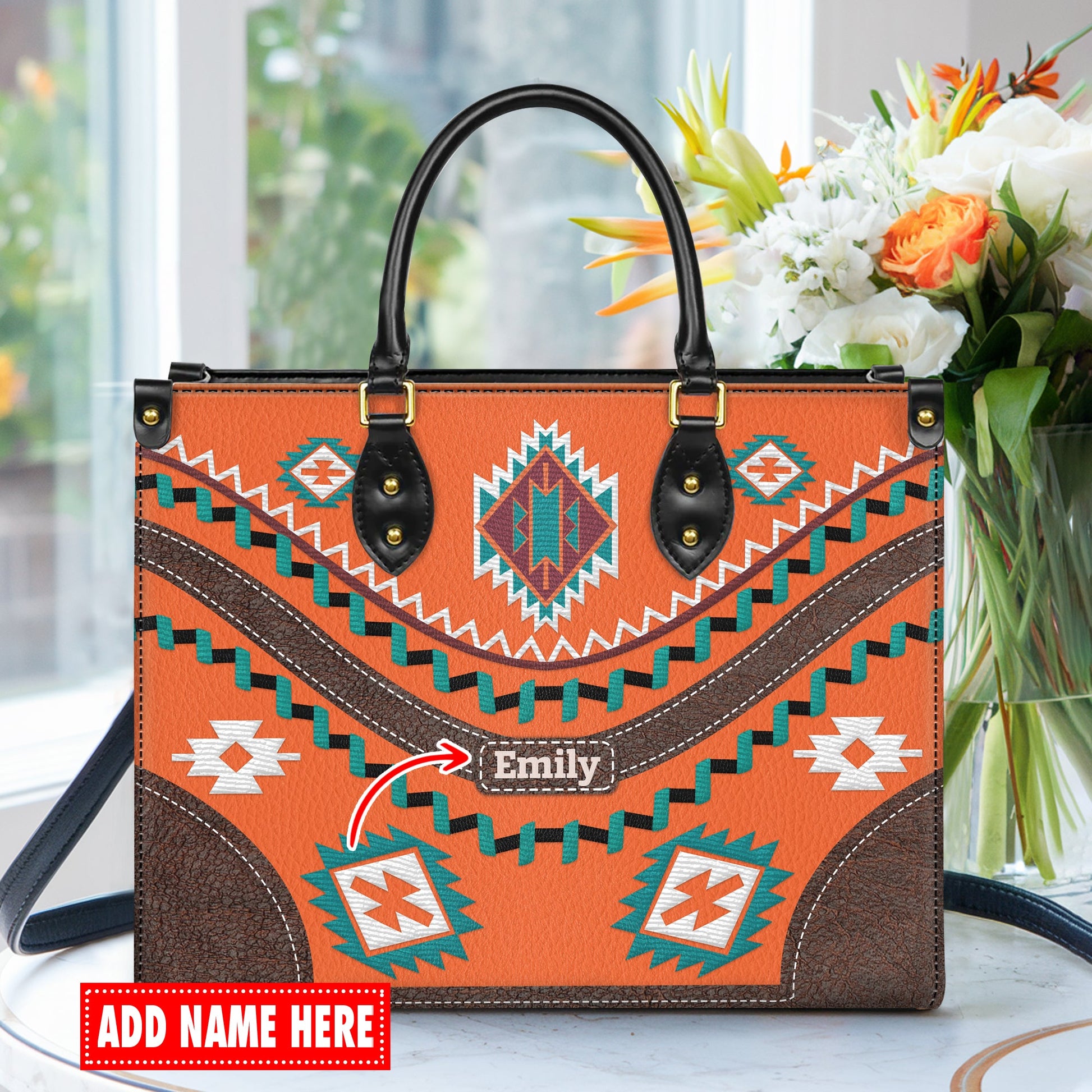Personalized Leather Handbag for Women - Design Patten Boho Aztec Style LB10