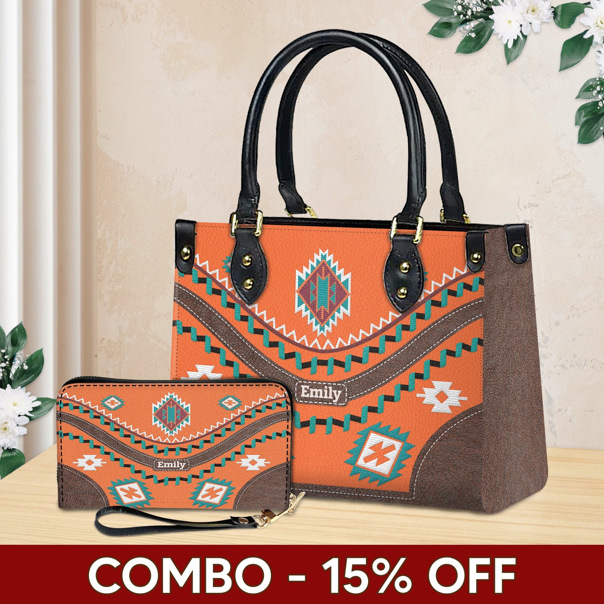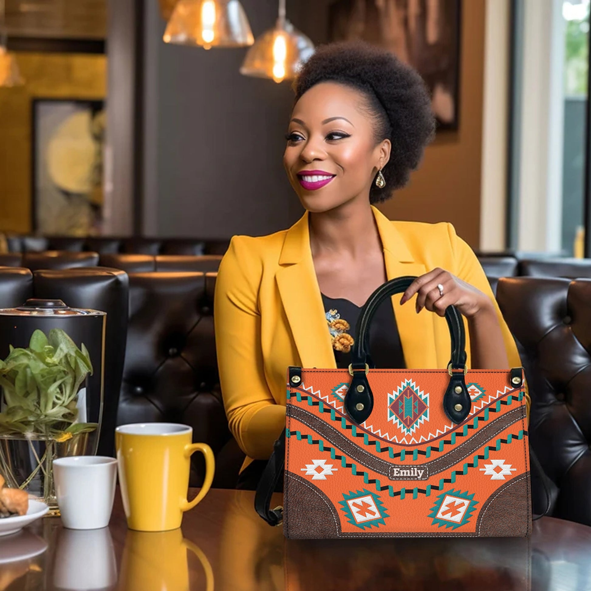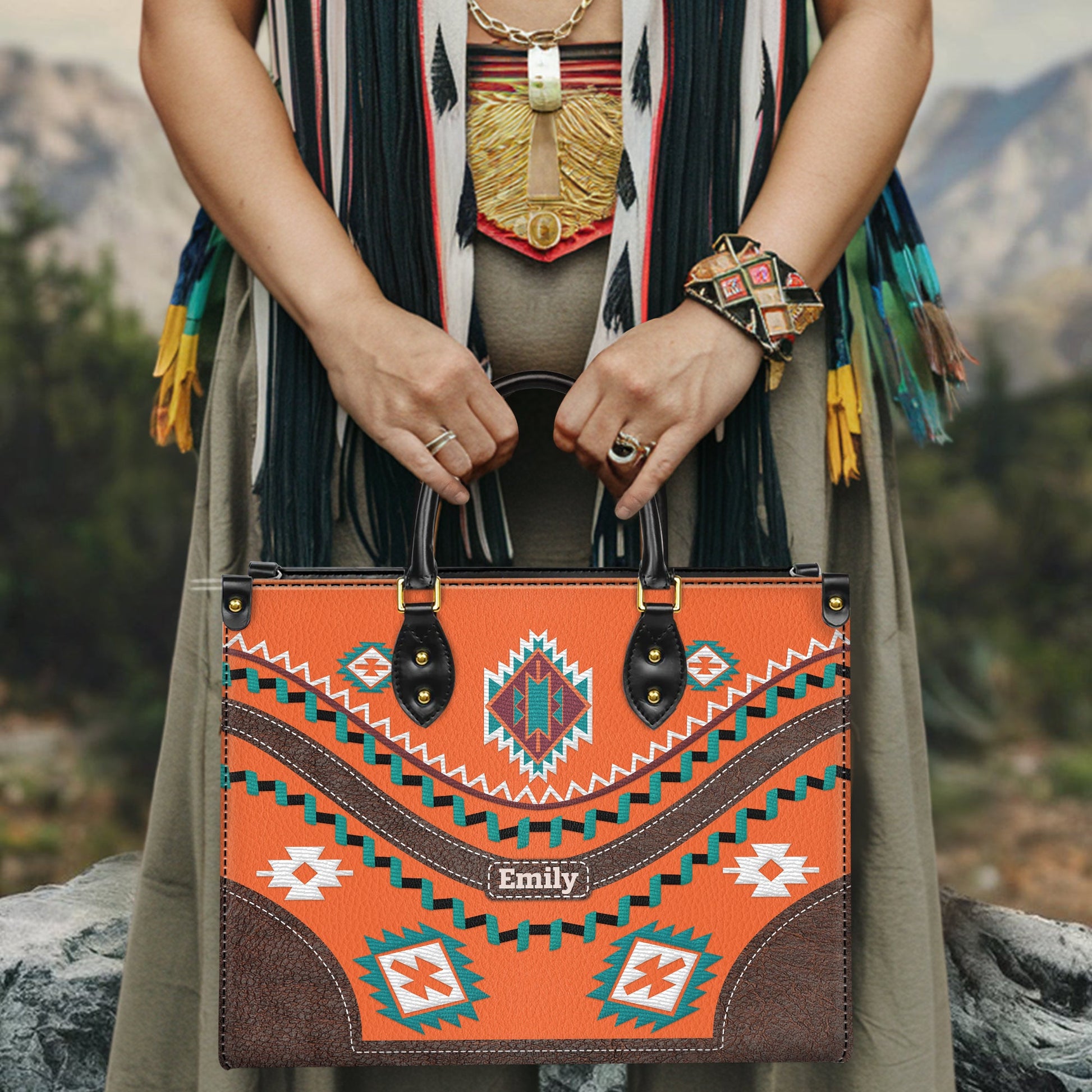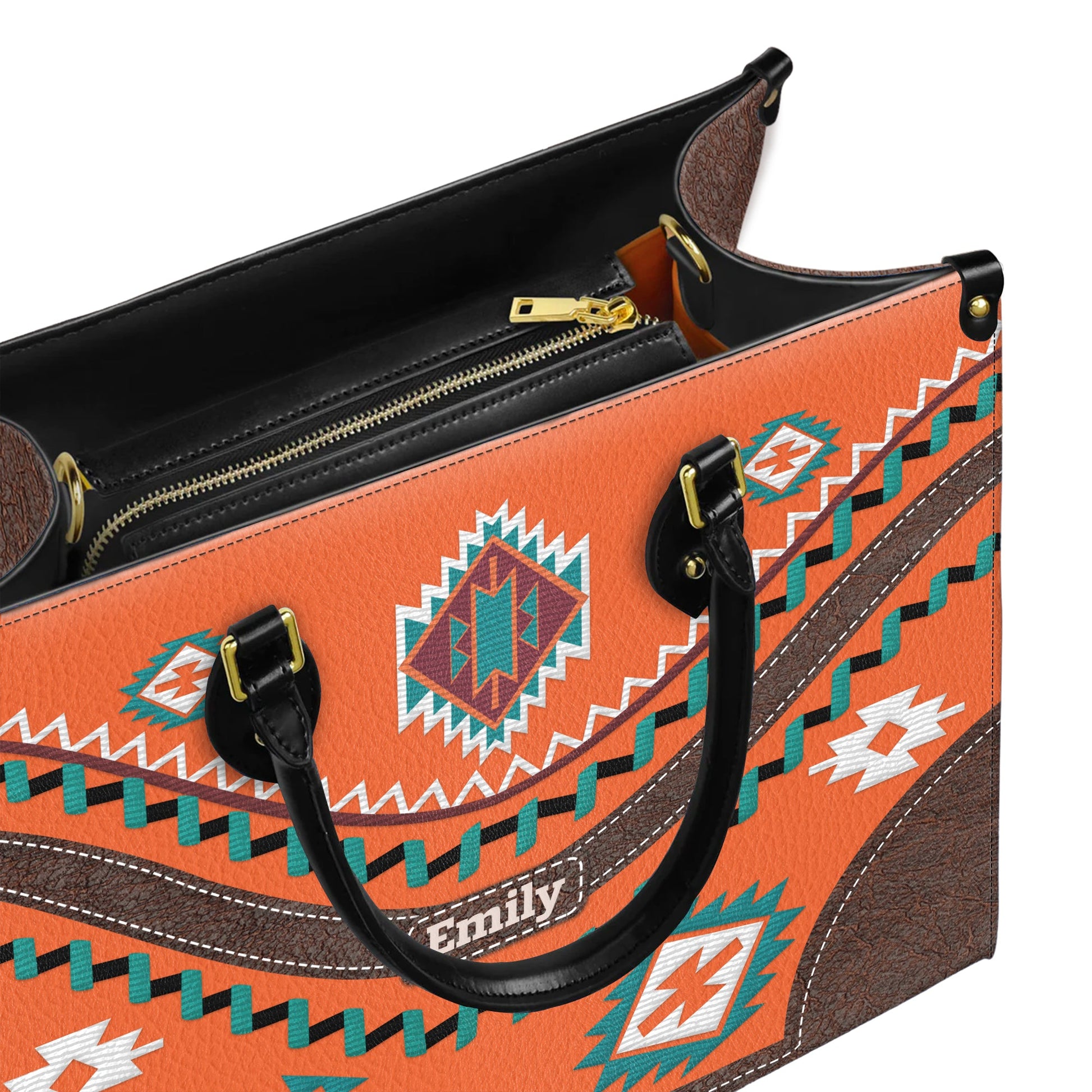 Personalized Leather Handbag for Women - Design Patten Boho Aztec Style LB10