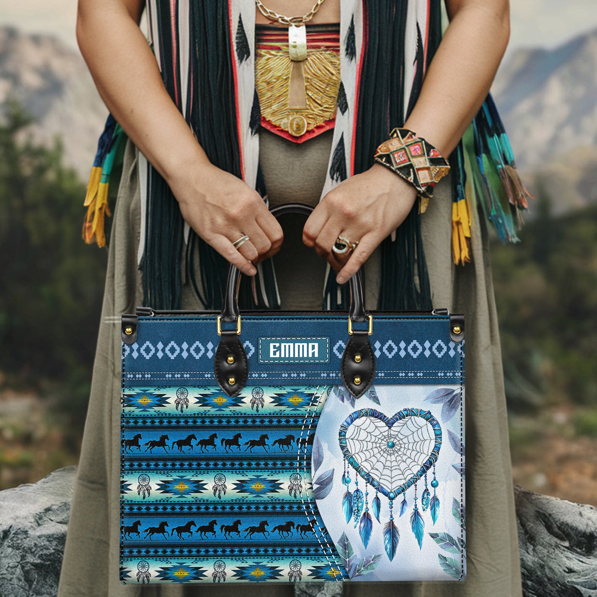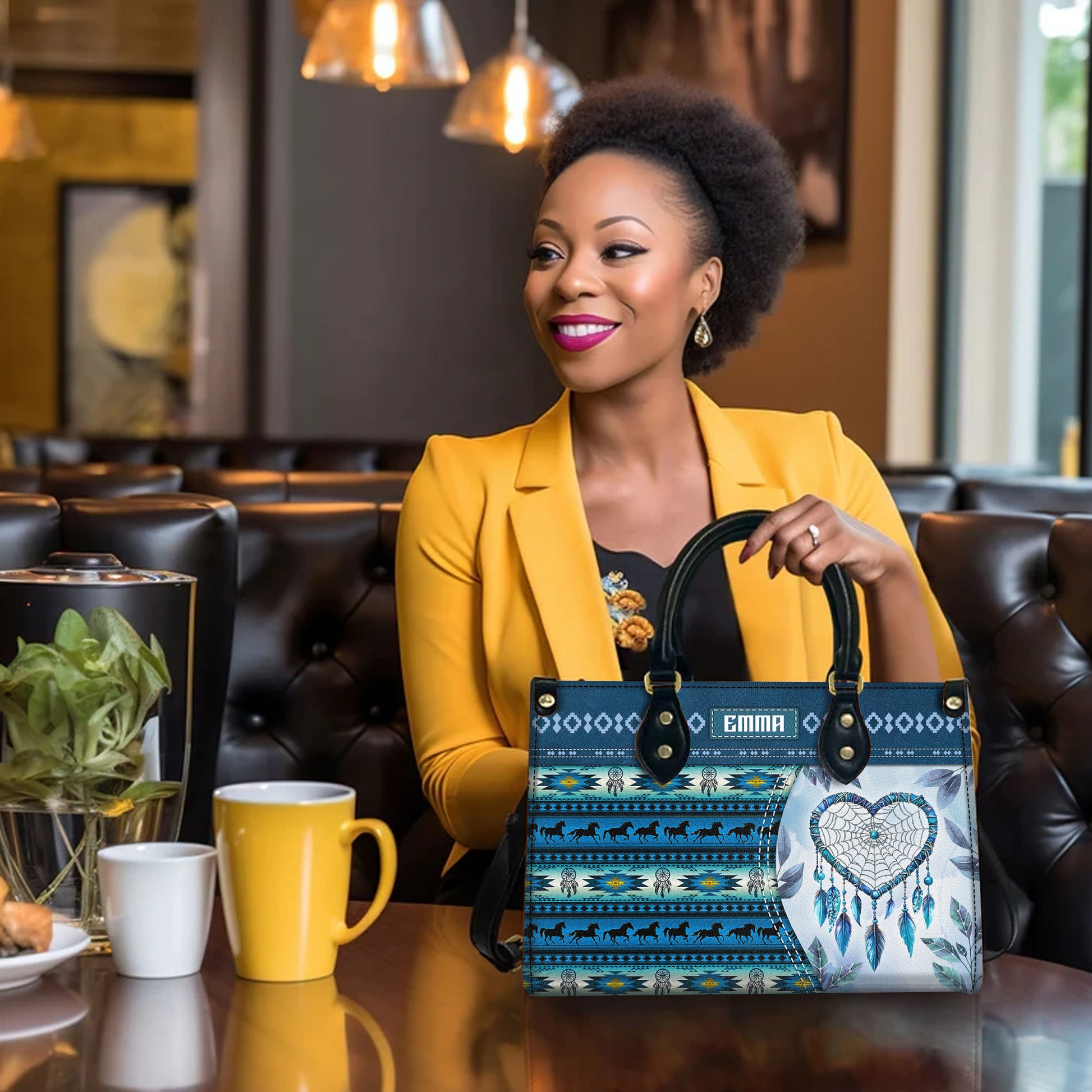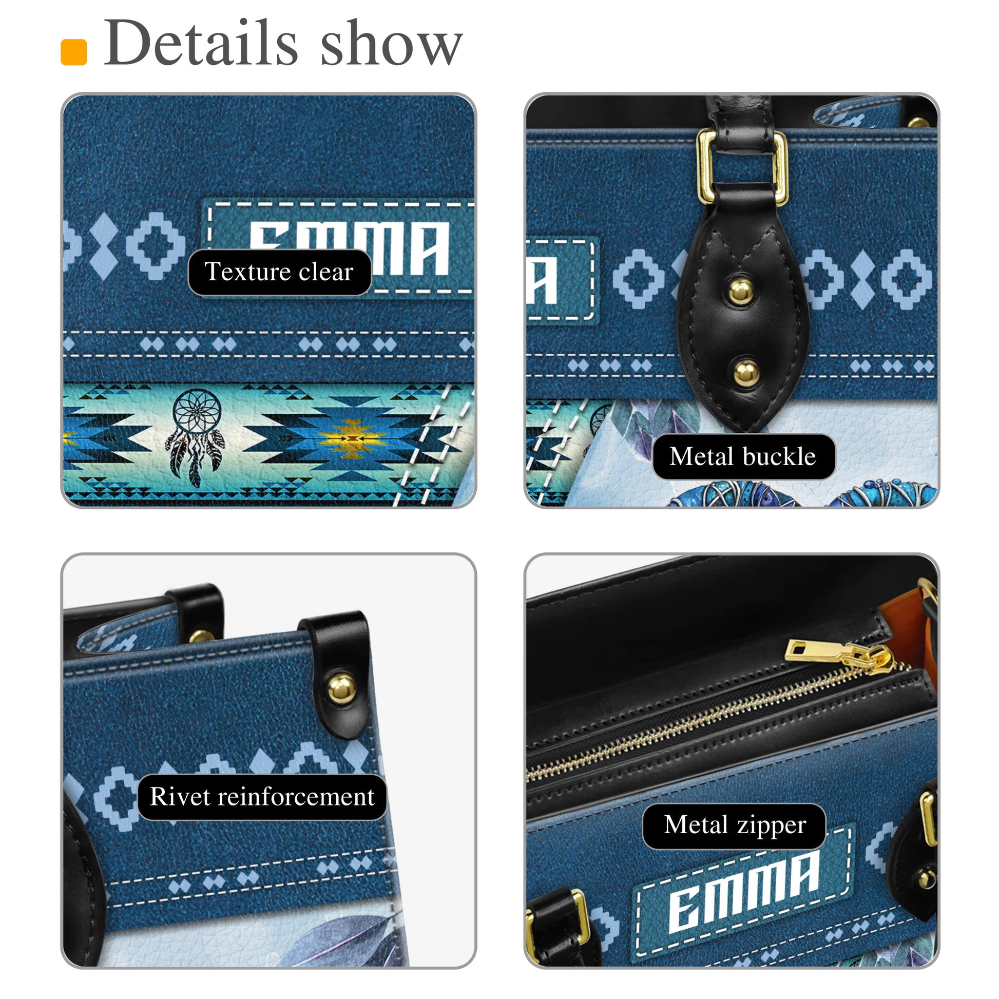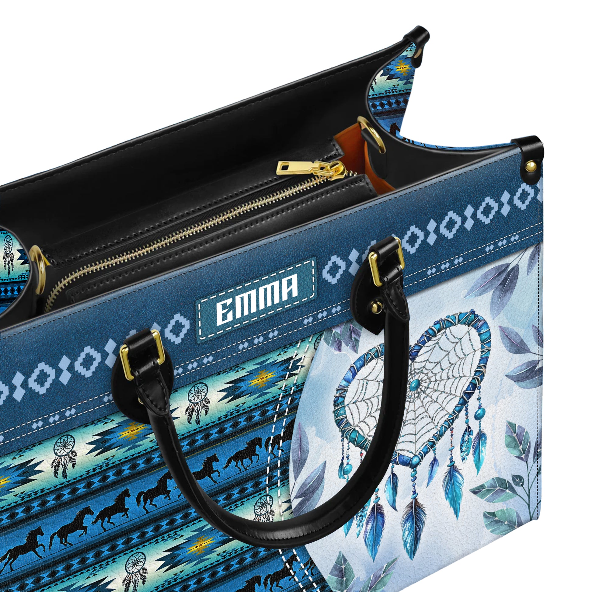 Personalized Leather Handbag for Women - Design Patterns Boho Blue Dreamcatcher