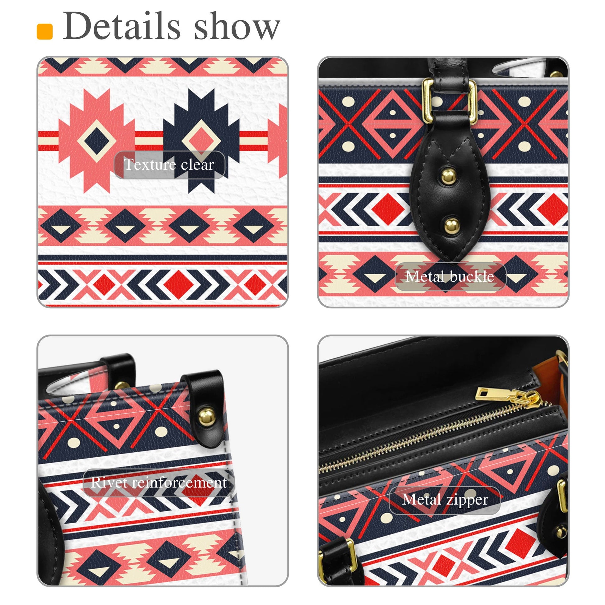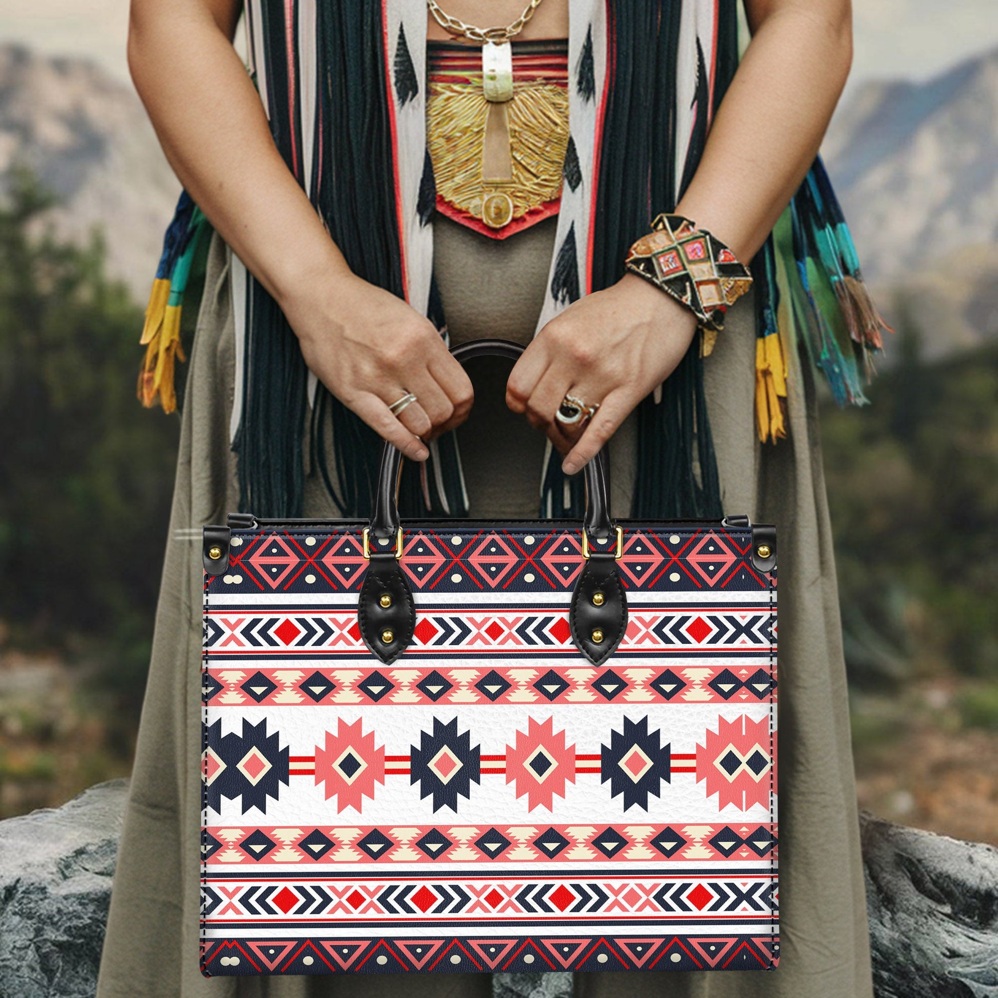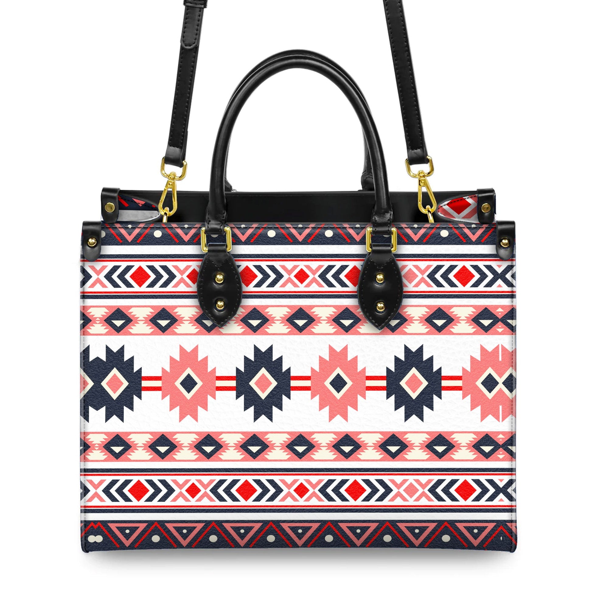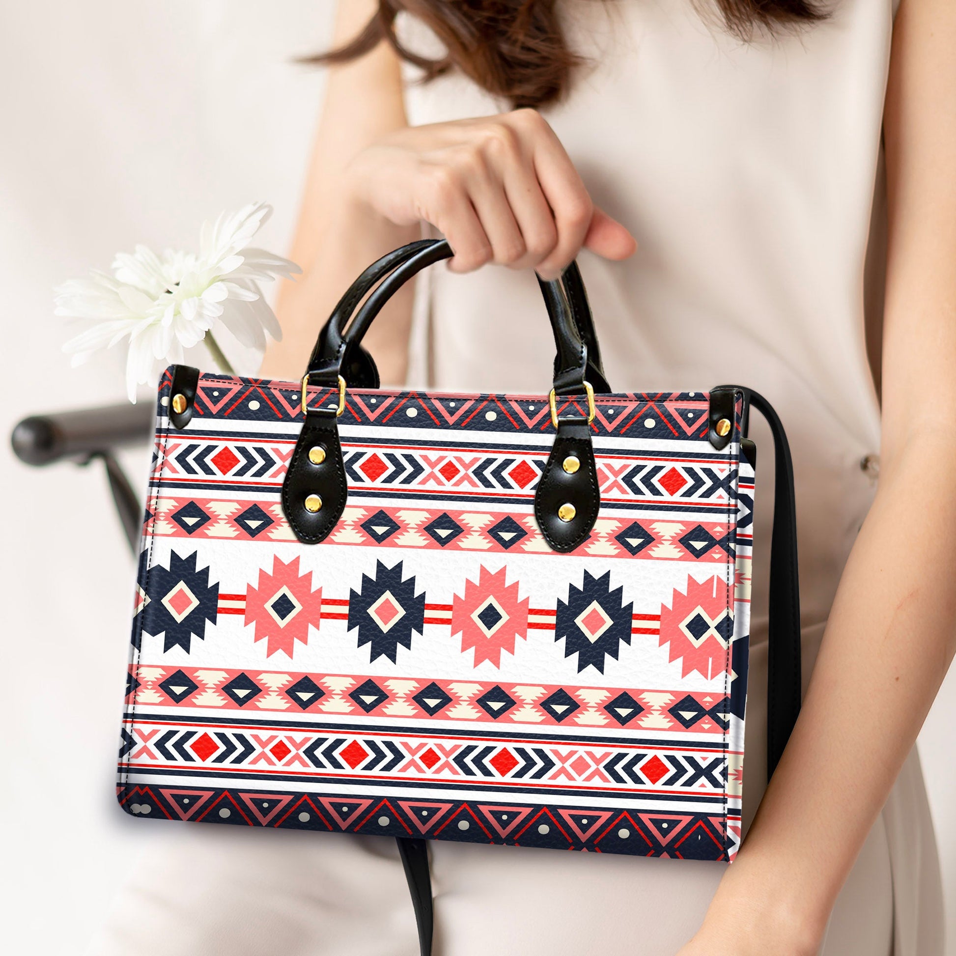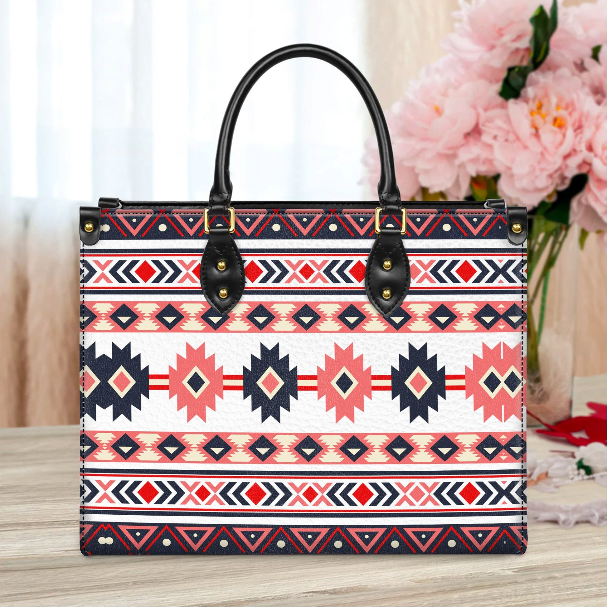 Pink & Navy Pattern Native Leather Handbag WCS005