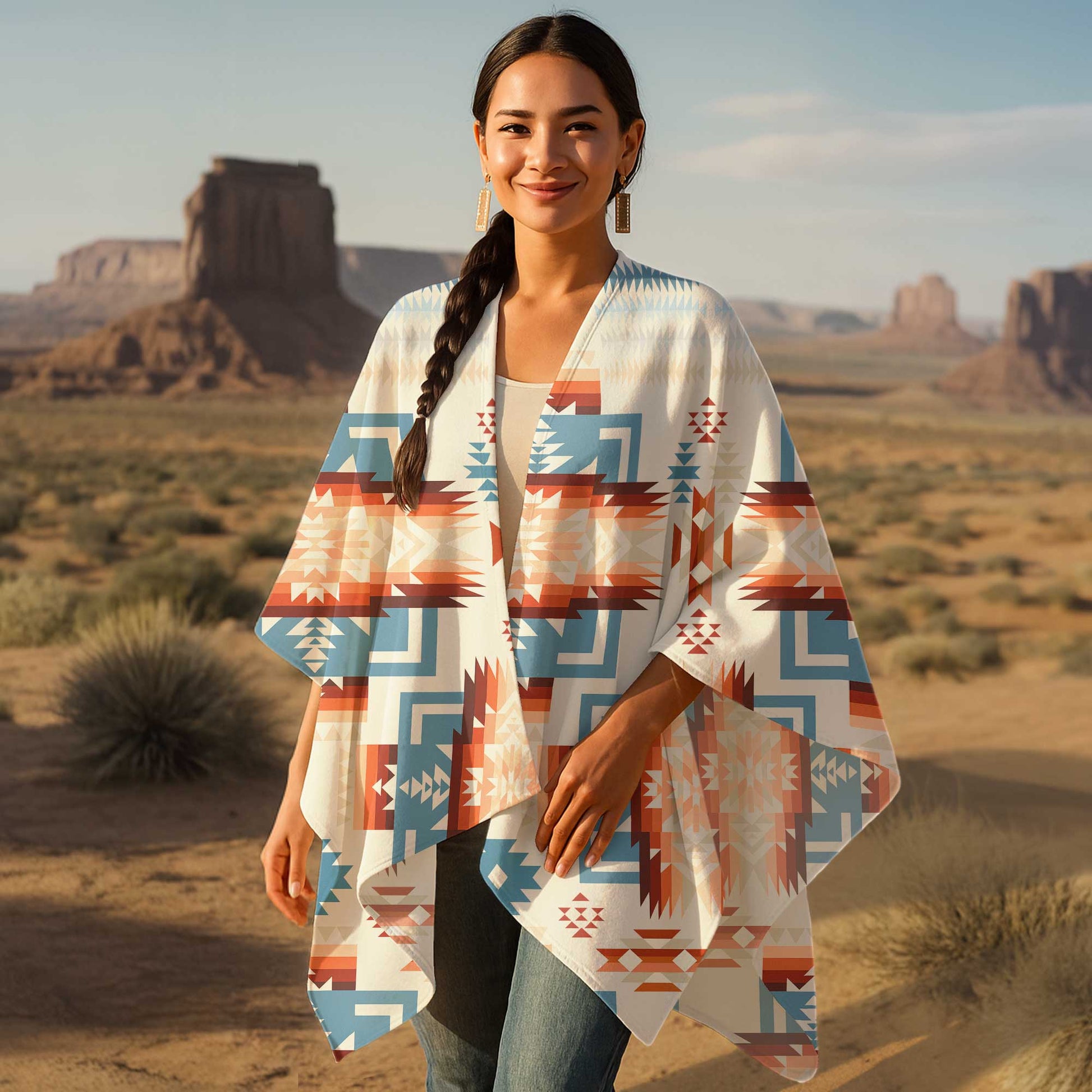 Boho Heritage Poncho – Native-Inspired Patterns in Sand, Sky & Clay