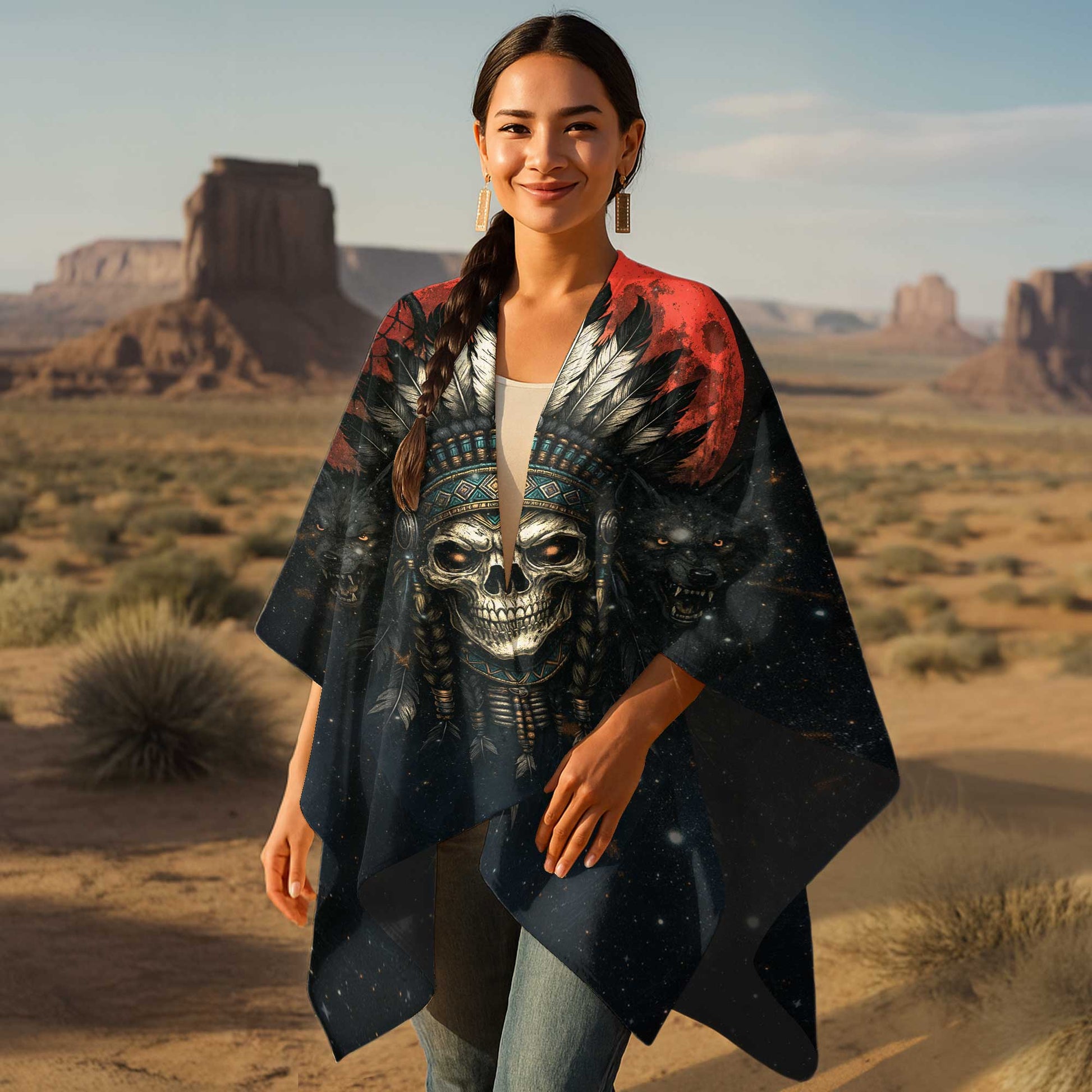 Poncho Boho Warrior – Skeleton Chief and Black Wolves