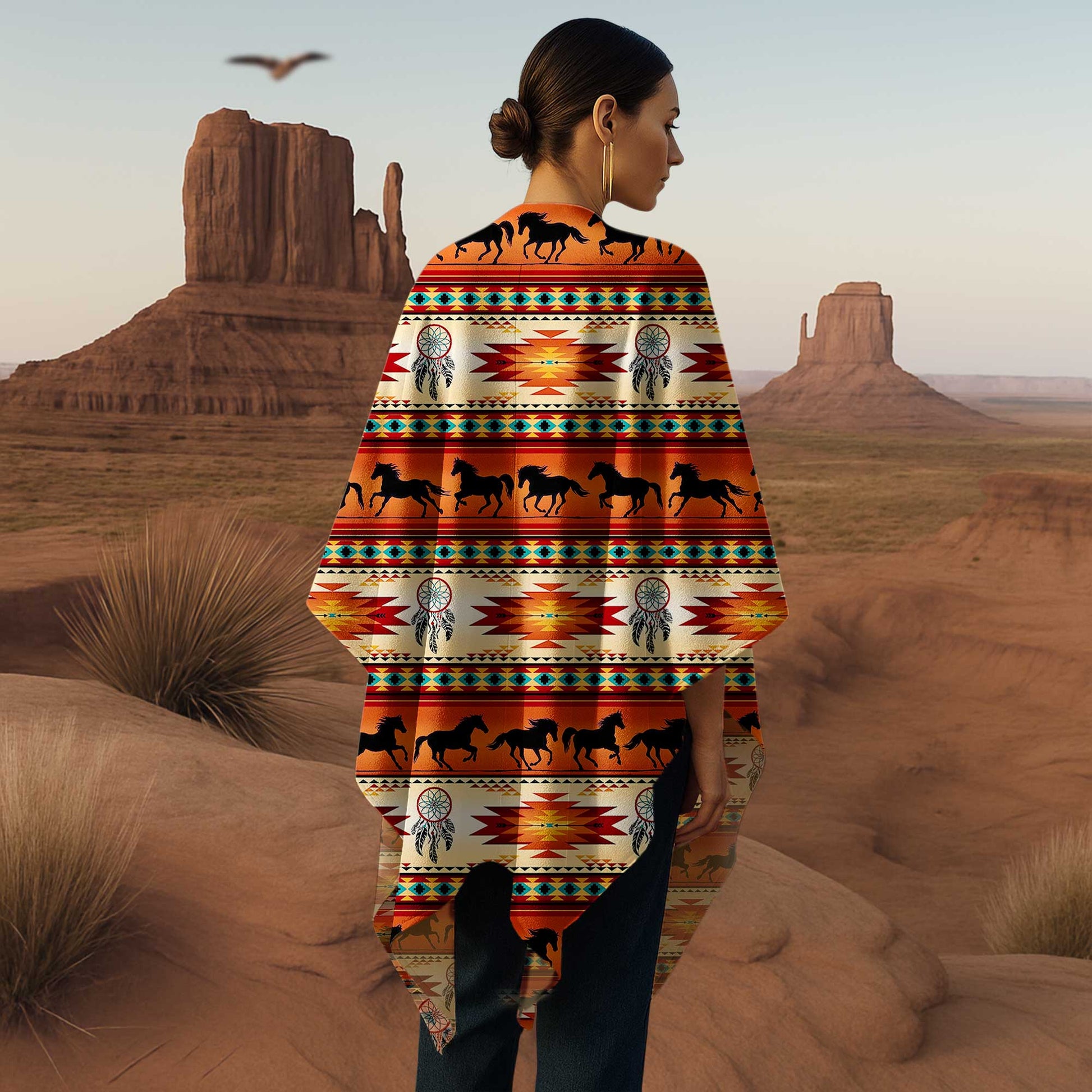 Poncho Tribal Mustang – Native Motifs & Traditional Dreamcatchers