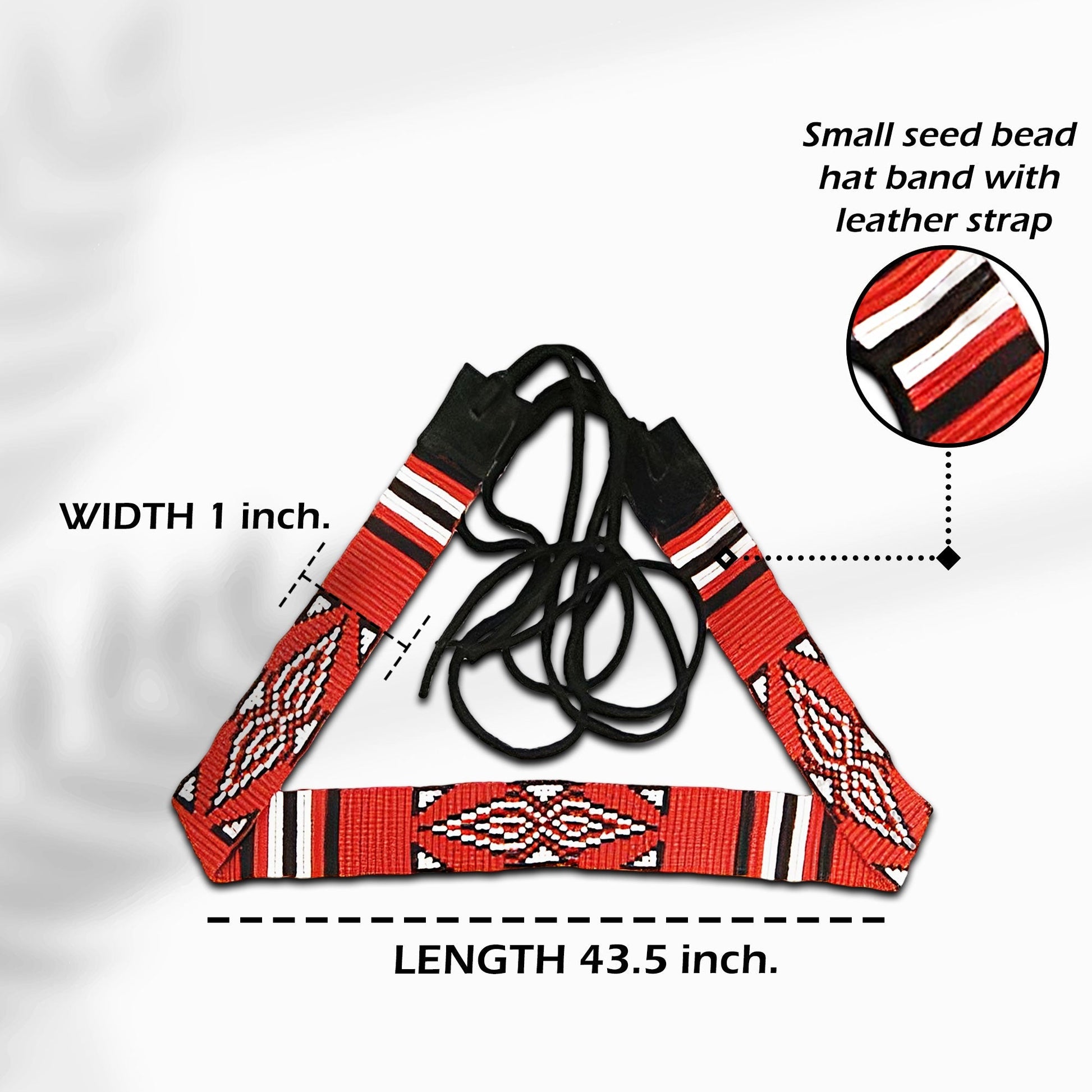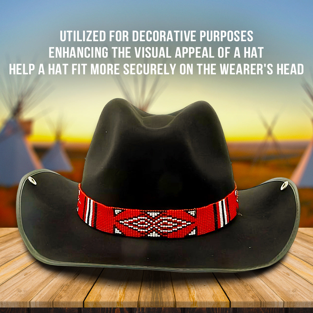 The intricate beadwork captures the essence of Native American symbolism, telling stories of unity, spirituality, and connection to the land. Each bead is thoughtfully threaded, allowing the patterns to come alive with a vibrant fusion of colors and intricate details. This Beaded Hatband isn't just an accessory; it's a representation of the legacy passed down through generations.