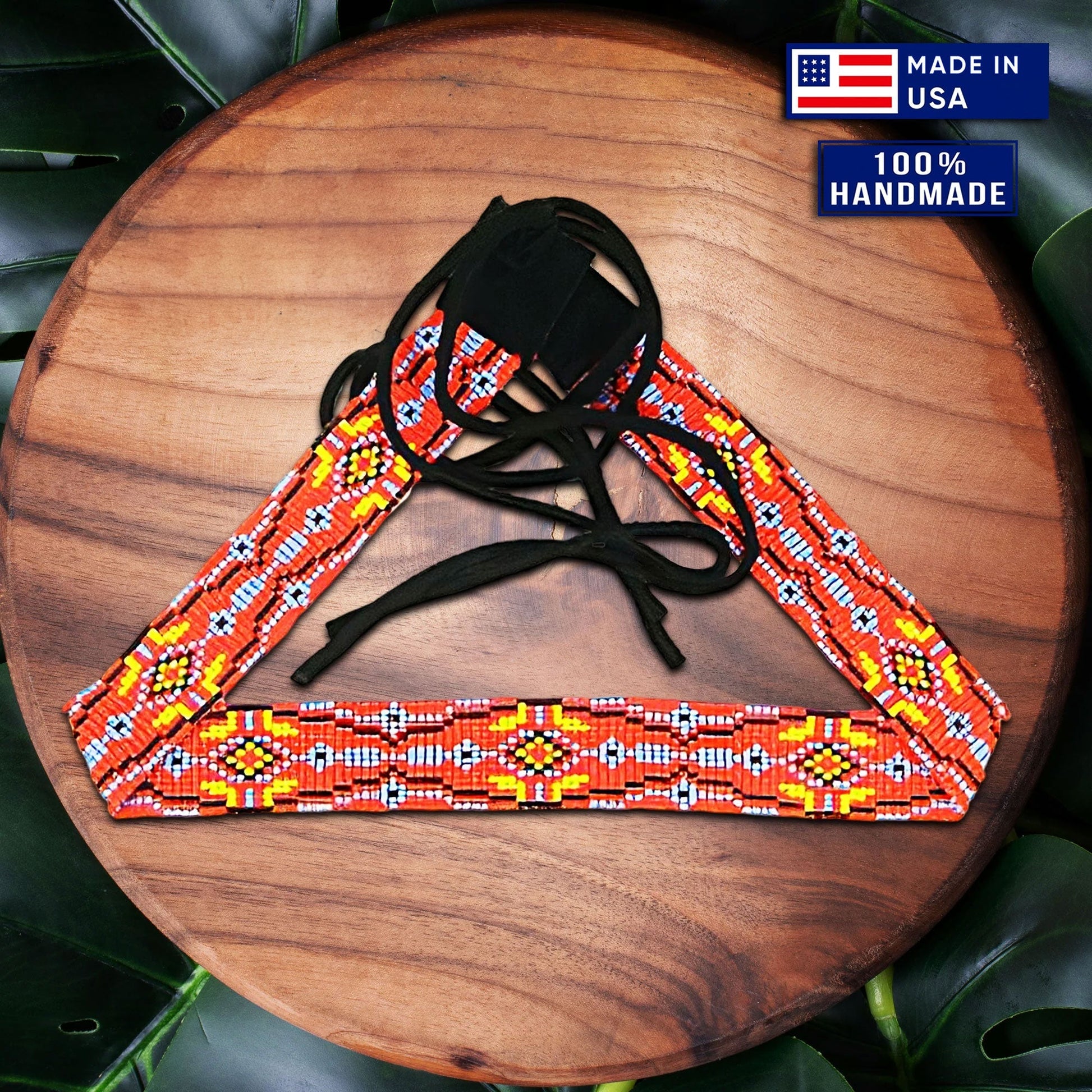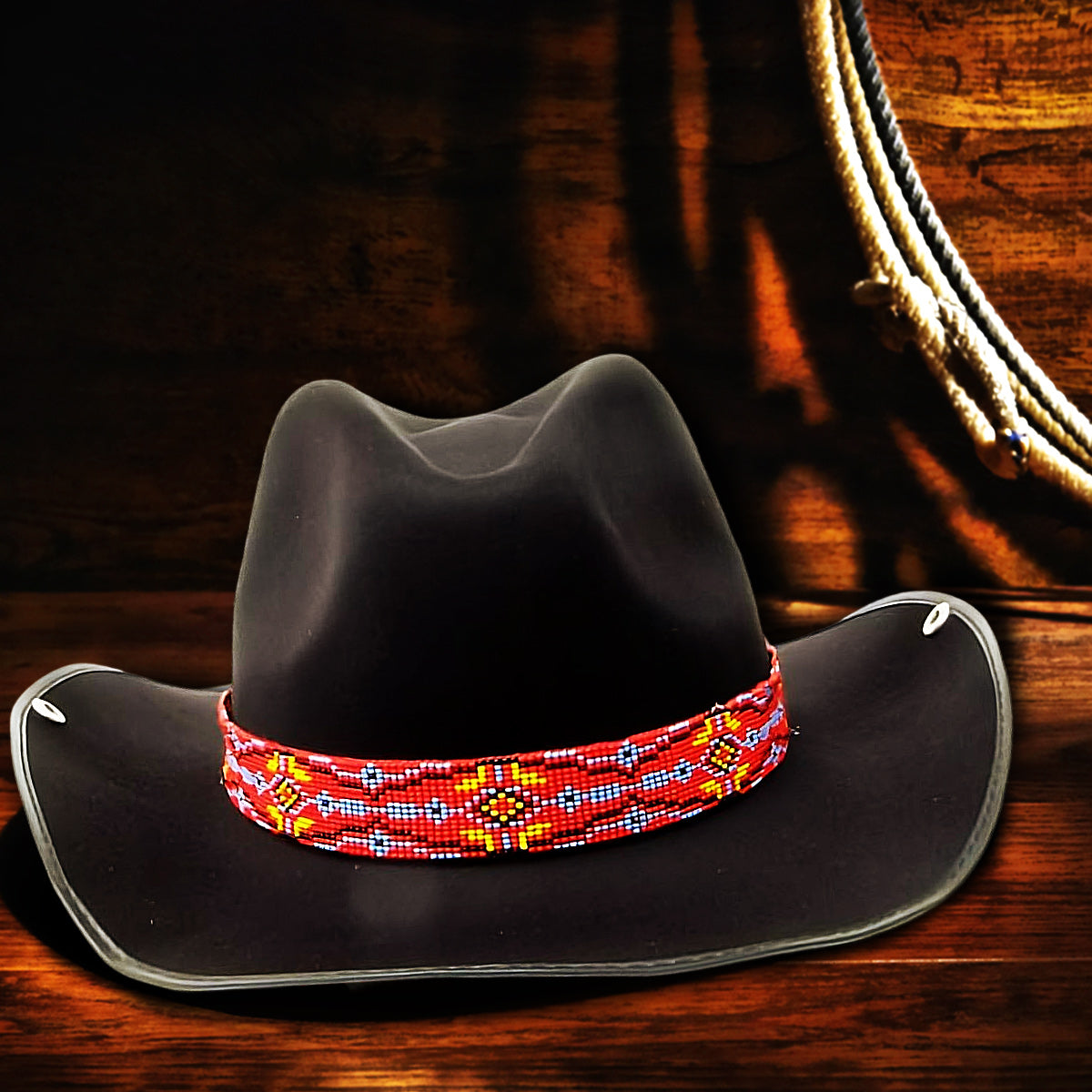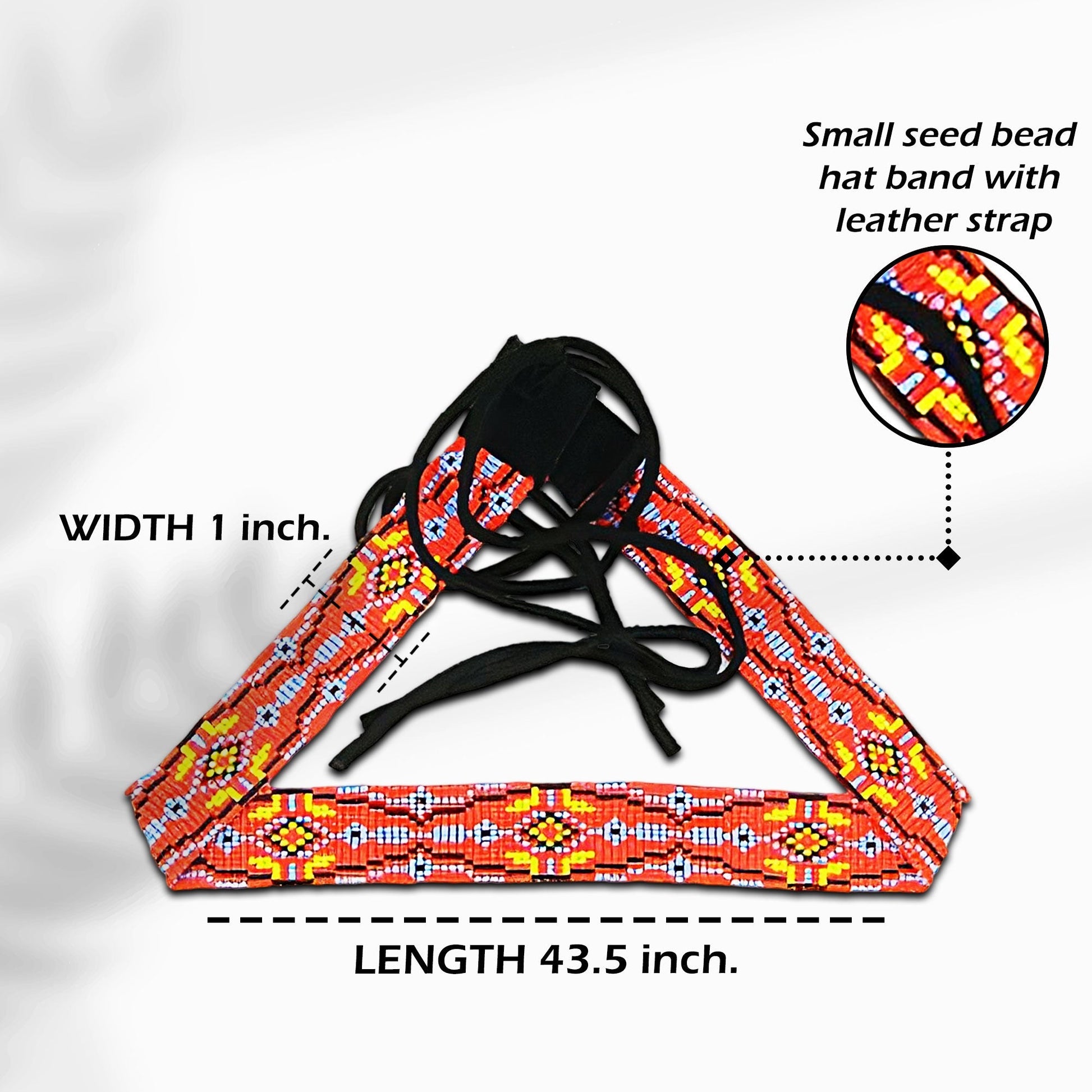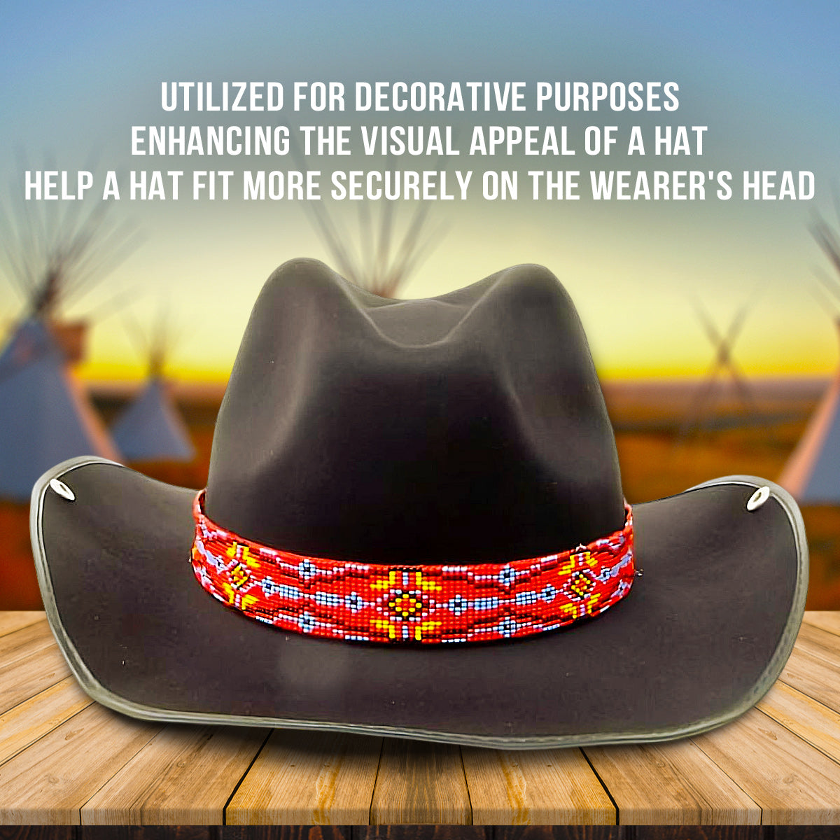 The intricate beadwork captures the essence of Native American symbolism, telling stories of unity, spirituality, and connection to the land. Each bead is thoughtfully threaded, allowing the patterns to come alive with a vibrant fusion of colors and intricate details. This Beaded Hatband isn't just an accessory; it's a representation of the legacy passed down through generations.