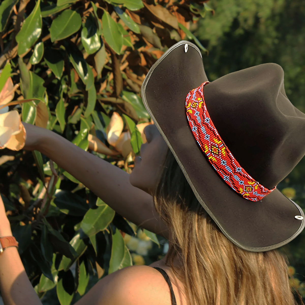 With its carefully curated design, this hatband is a conversation starter. It's an opportunity to share the beauty of Indigenous traditions and their enduring impact on contemporary aesthetics. By choosing this accessory, you're celebrating the timeless artistry while supporting the continuation of cultural expression.