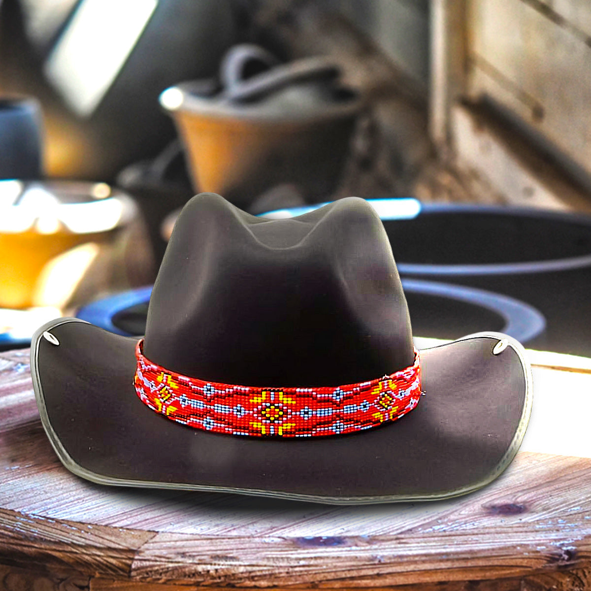 Step into the world of Native American craftsmanship with the Beaded Hatband, where every bead is a testament to the intricate relationships between cultures, stories, and the art of self-expression. It's more than an adornment; it's a tribute to the living heritage that continues to thrive and inspire.