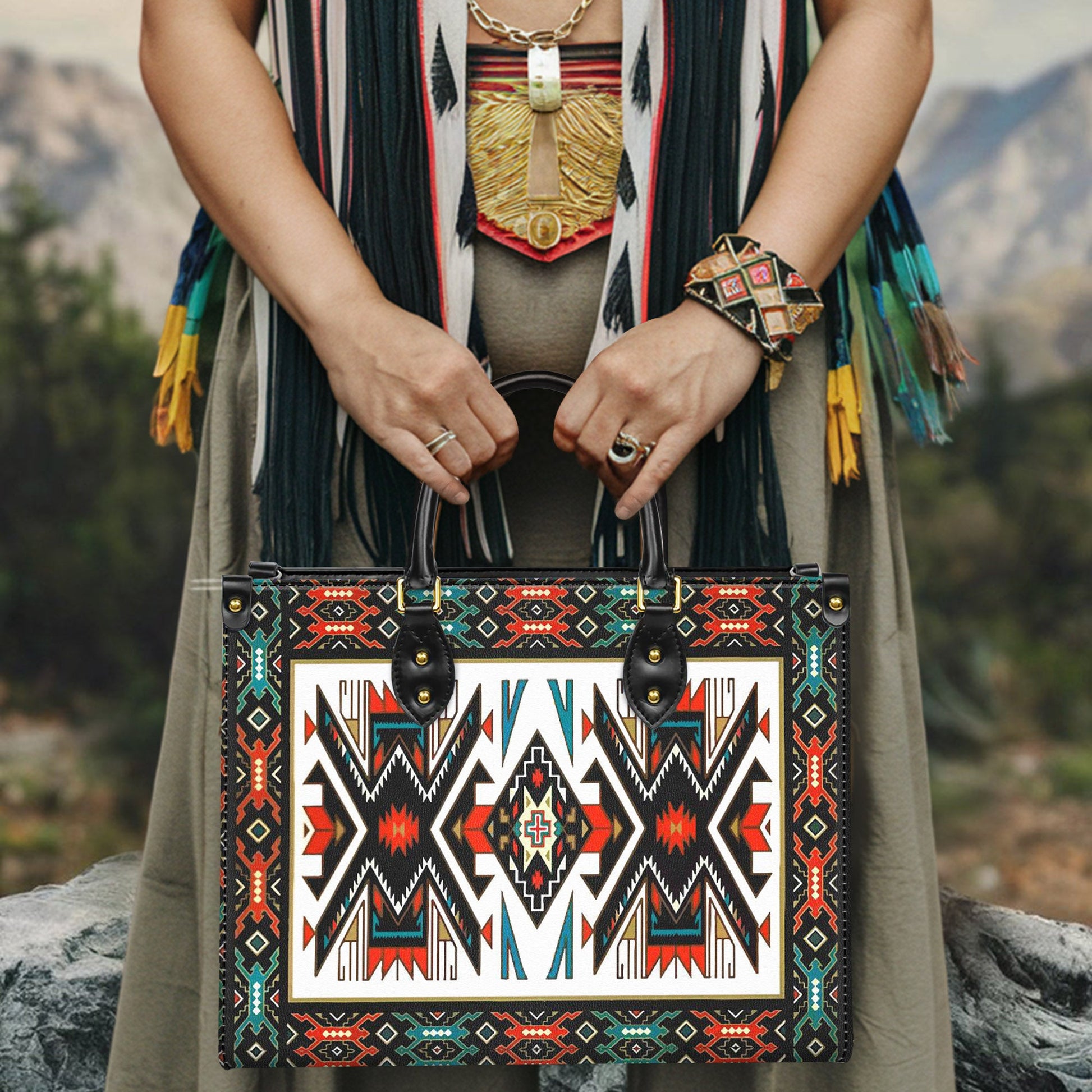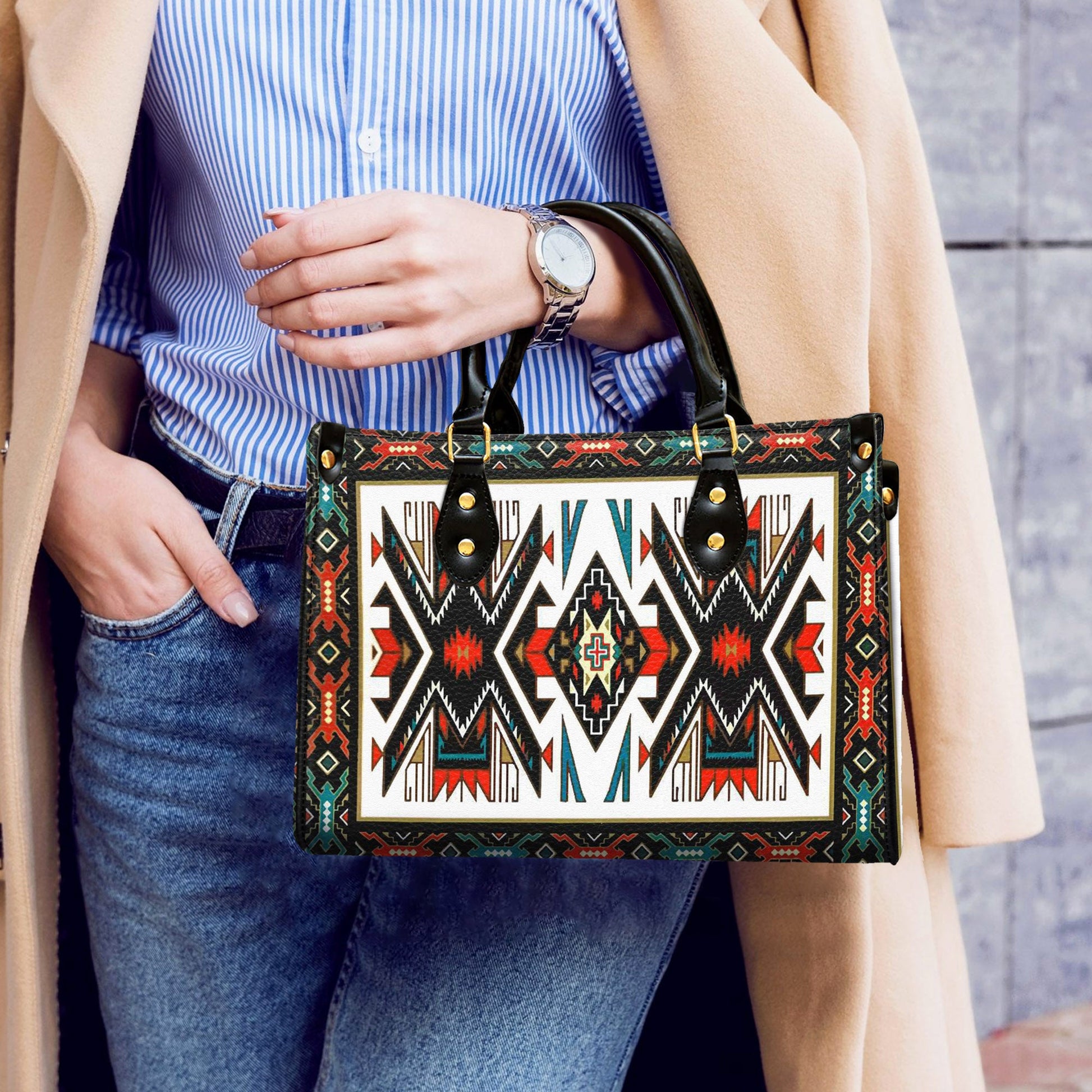 Tribal Colorful Pattern Leather Handbag WCS006