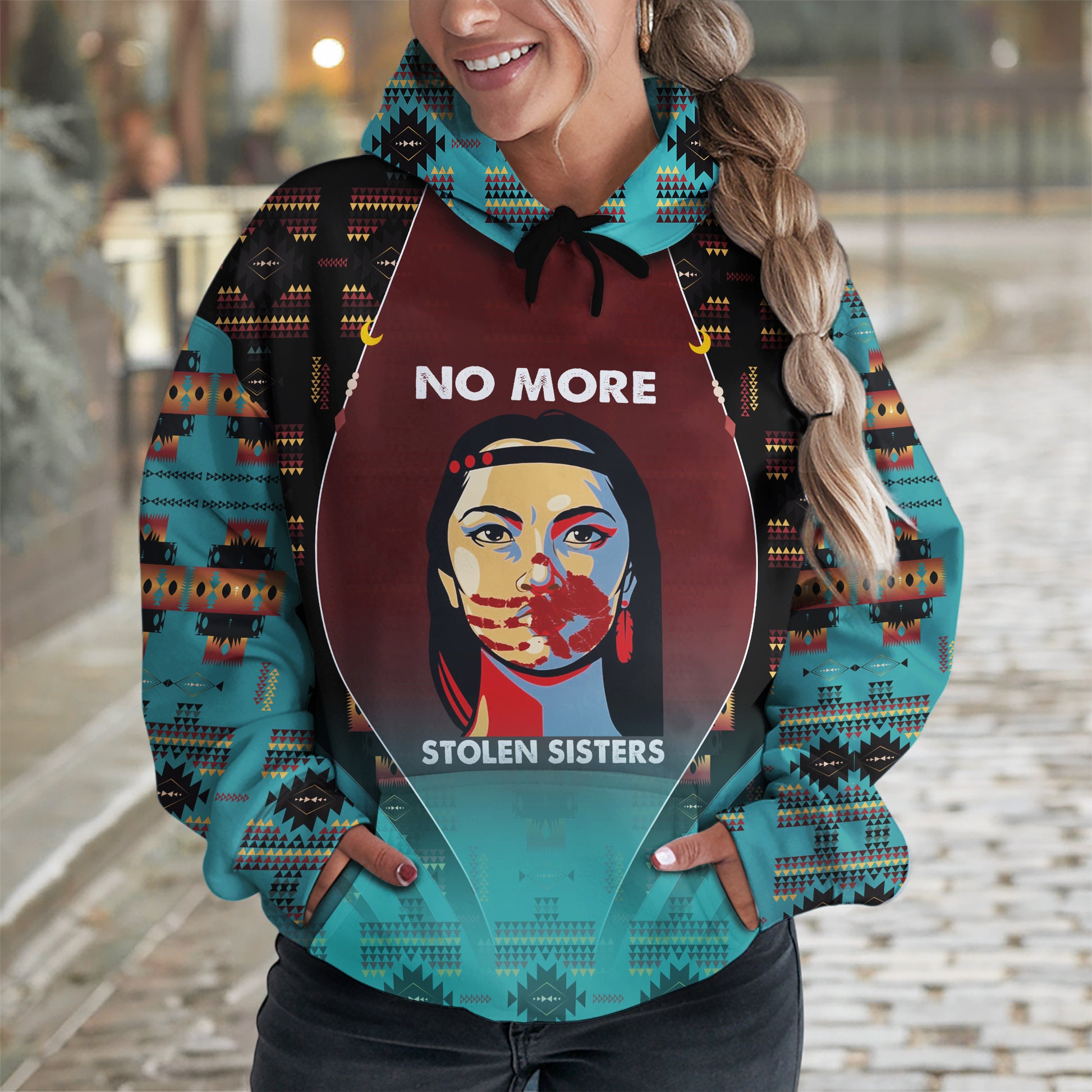 Tribal Feather Hoodie – Bold Red & Geometric Patterns & MMIW