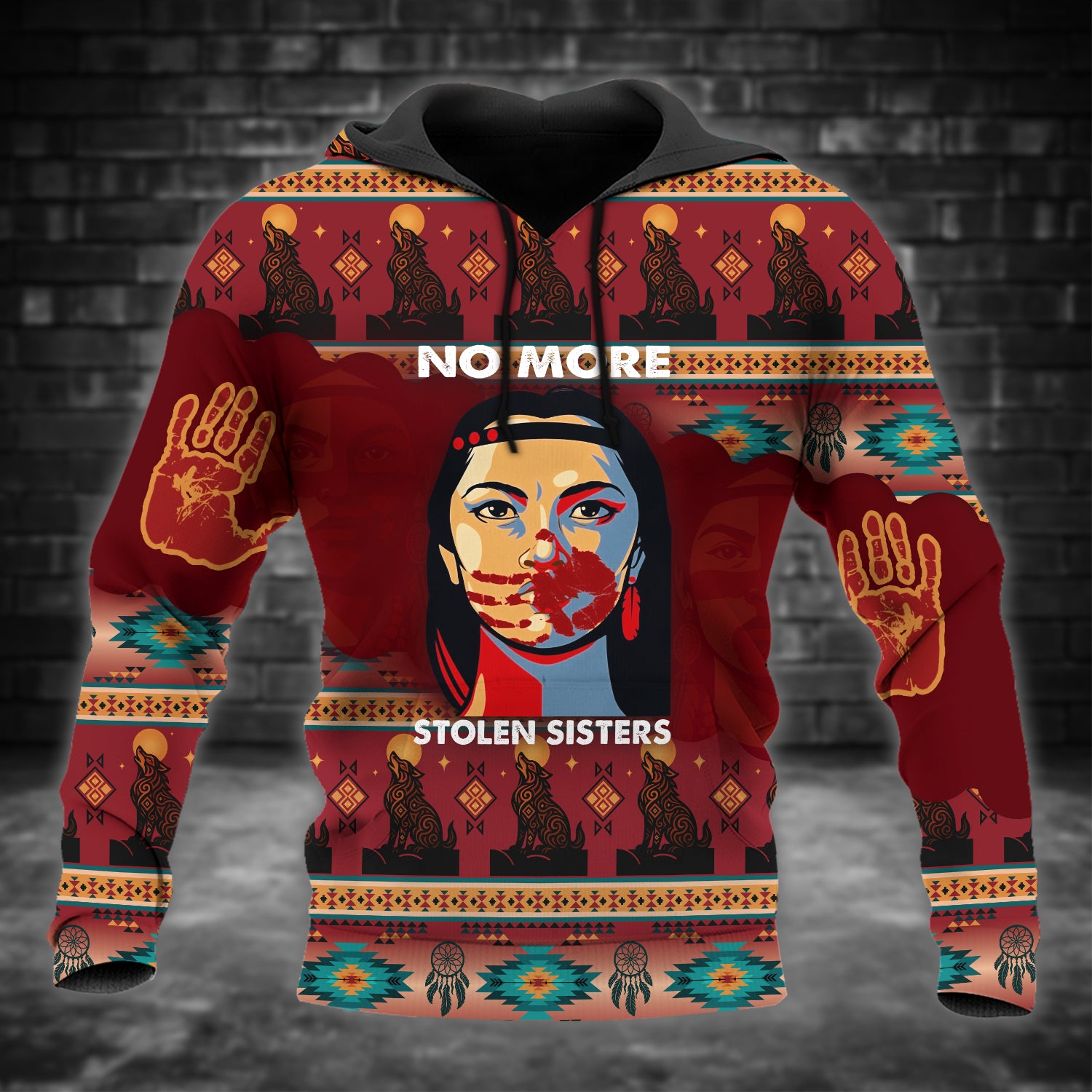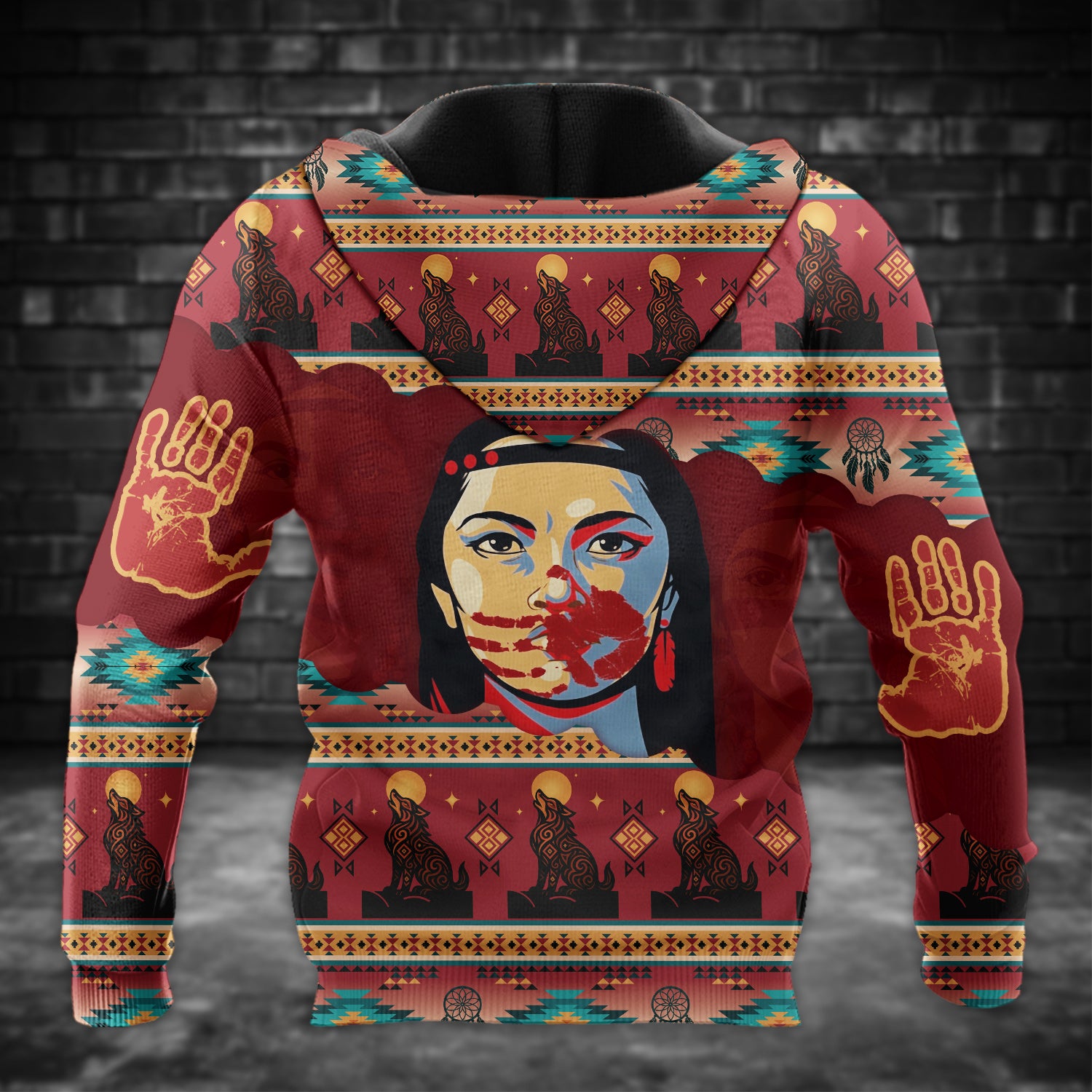 Tribal Feather Hoodie – Bold Red & Geometric Patterns & MMIW