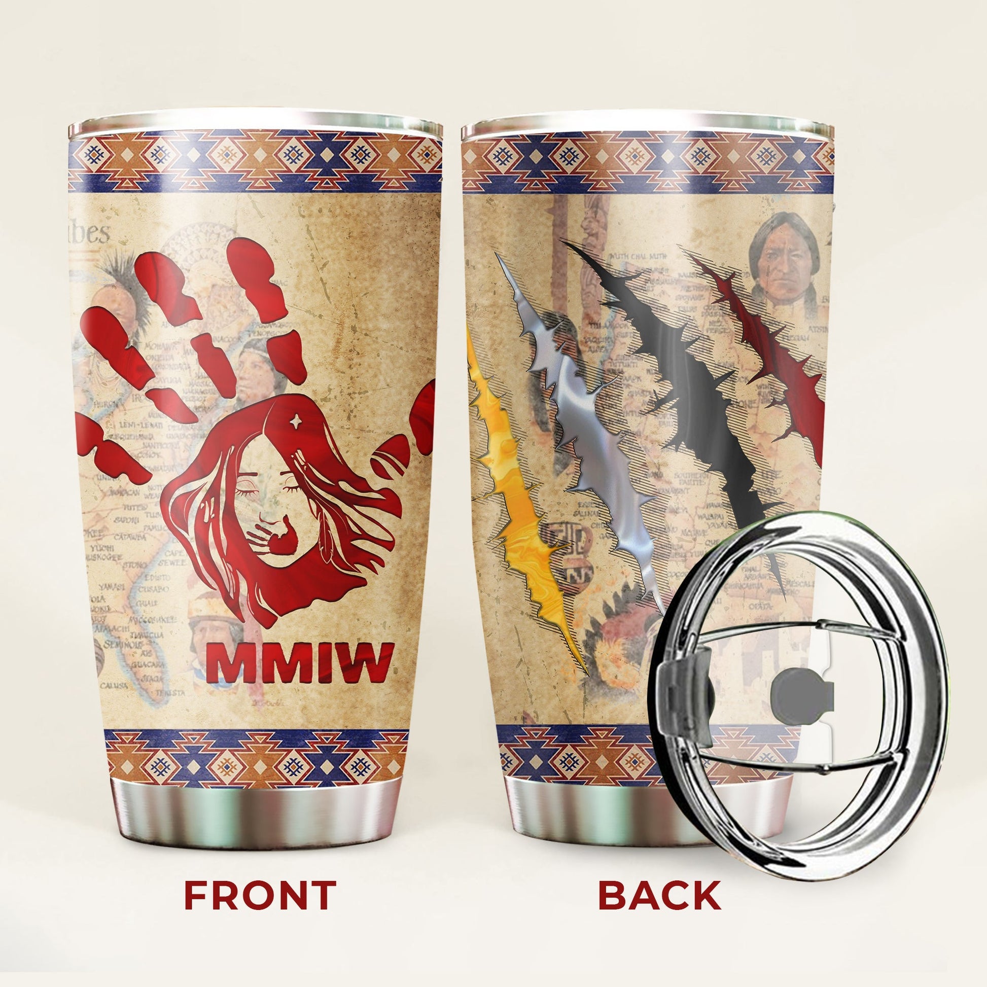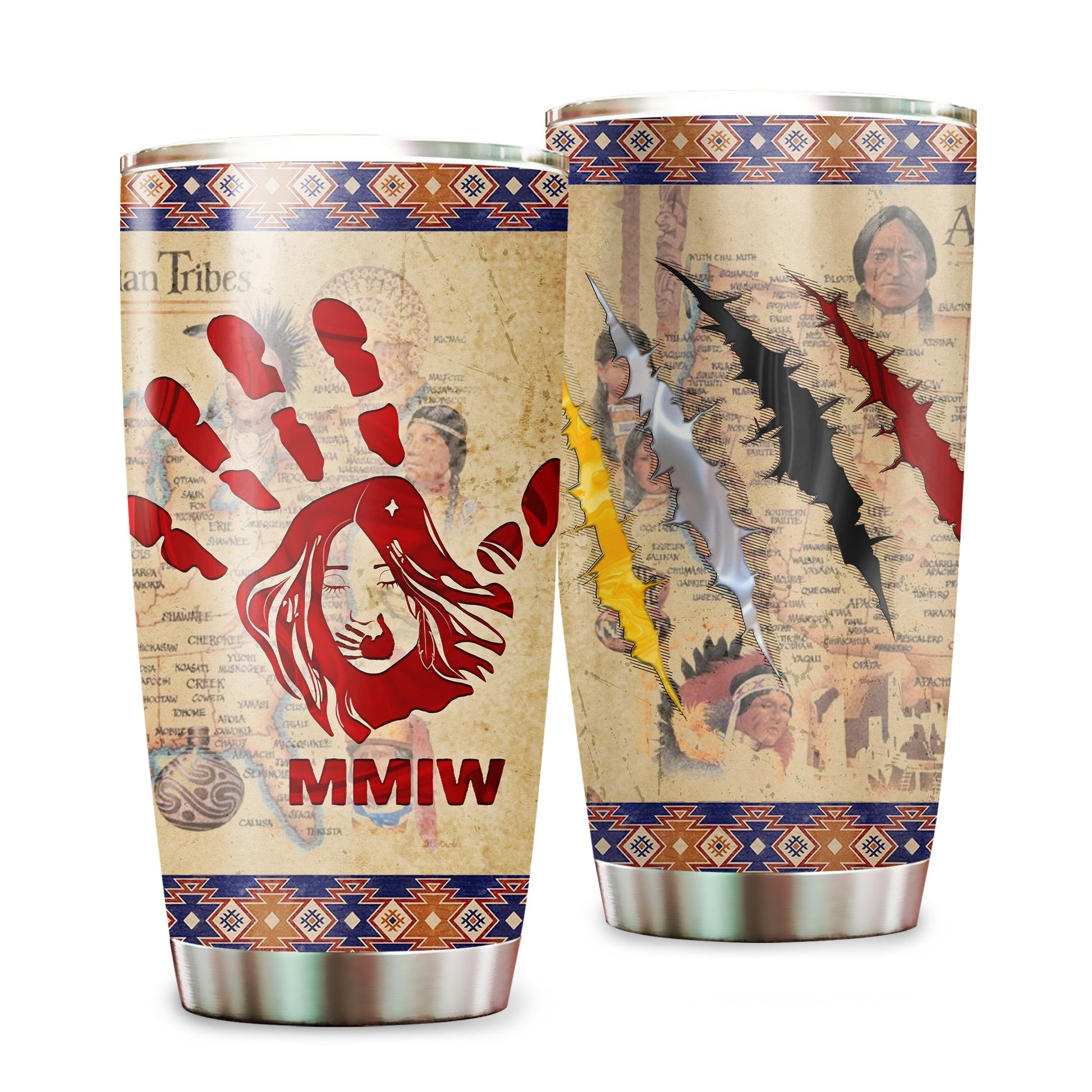 MMIW Red Hand and Maps Native American Tumbler Stainless Steel Drinking Cup