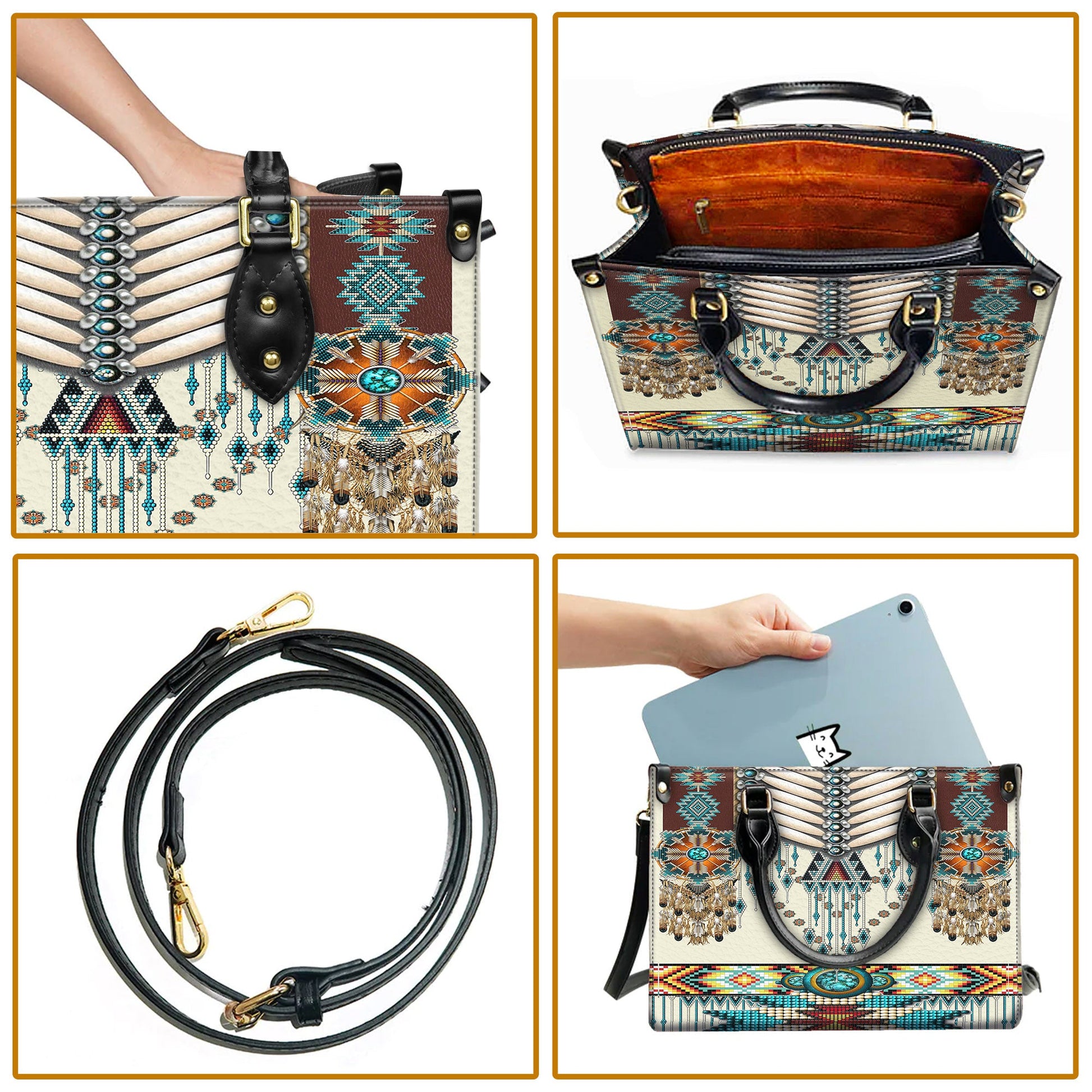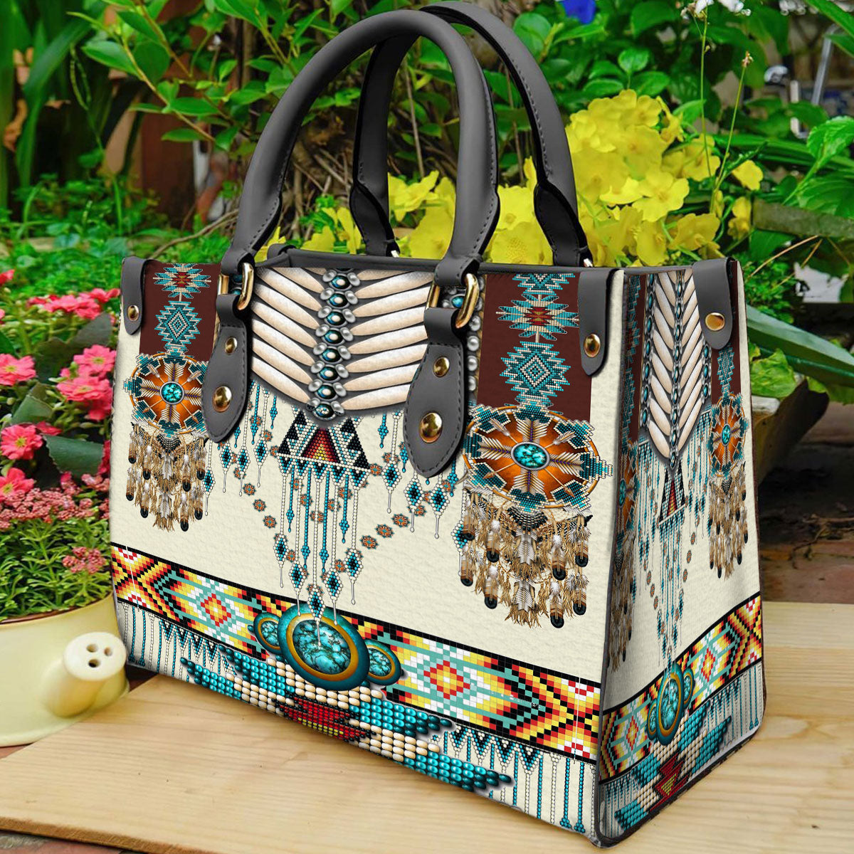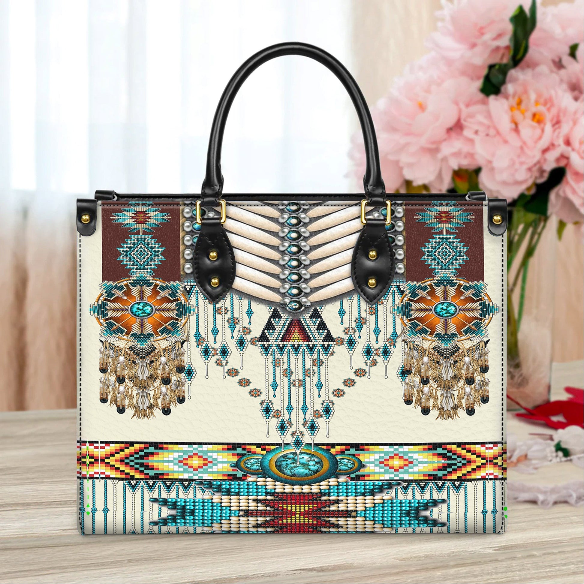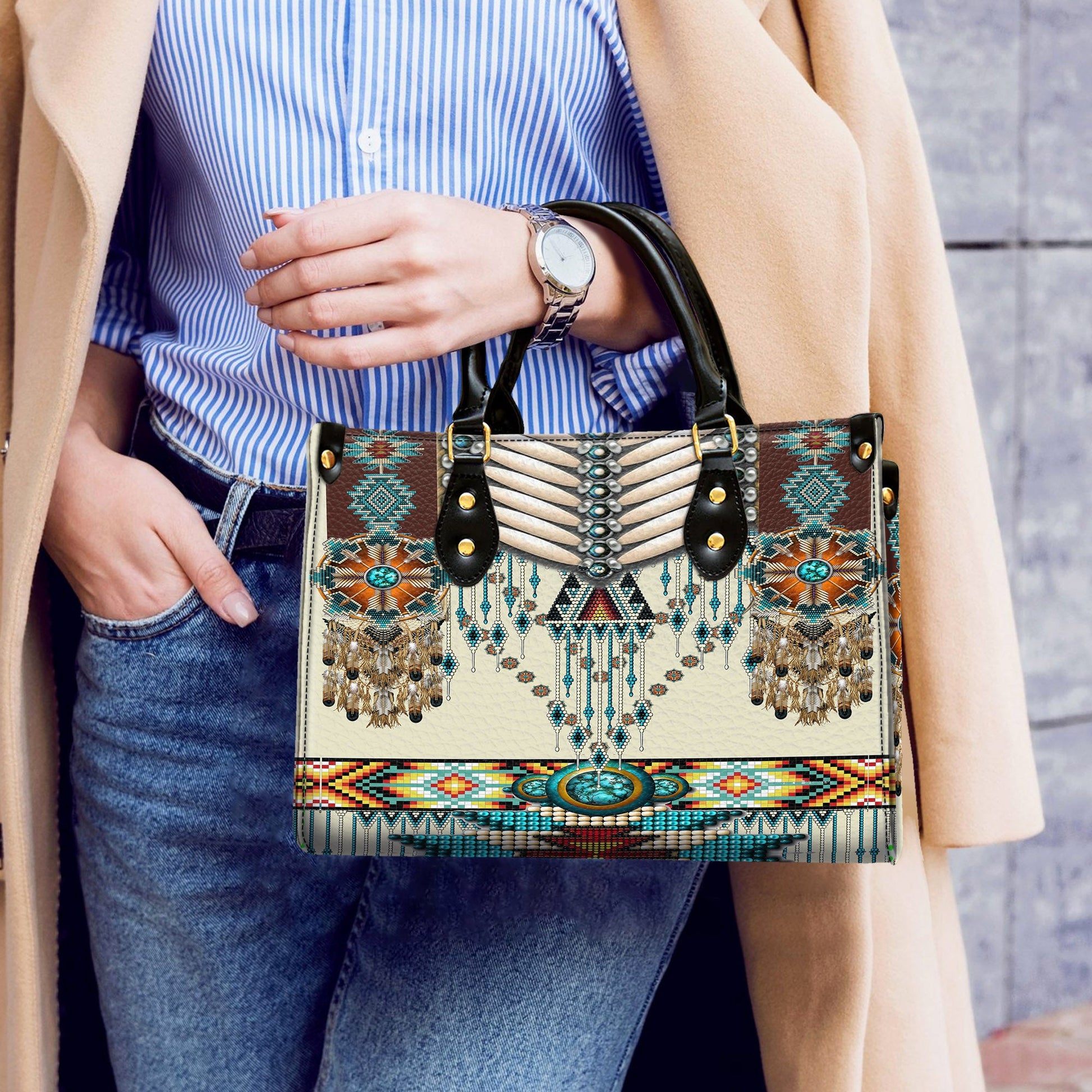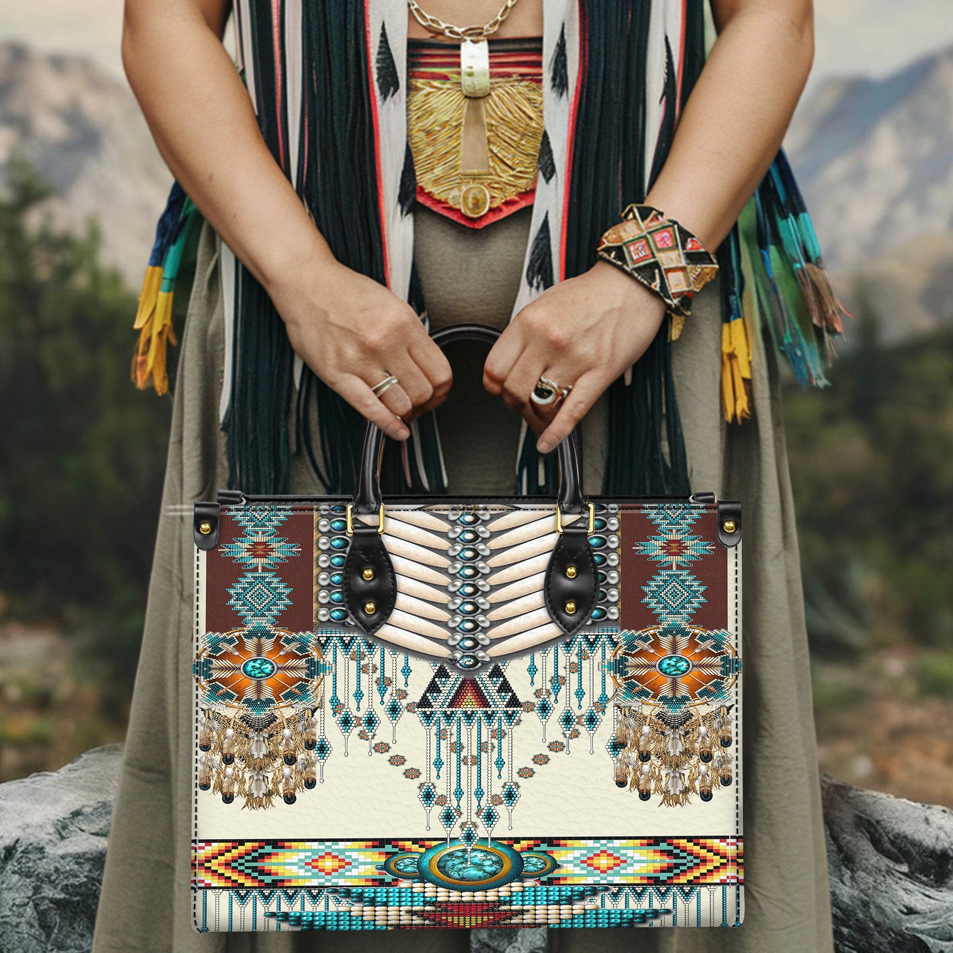 Turquoise Blue Pattern Breastplate Leather Handbag WCS011